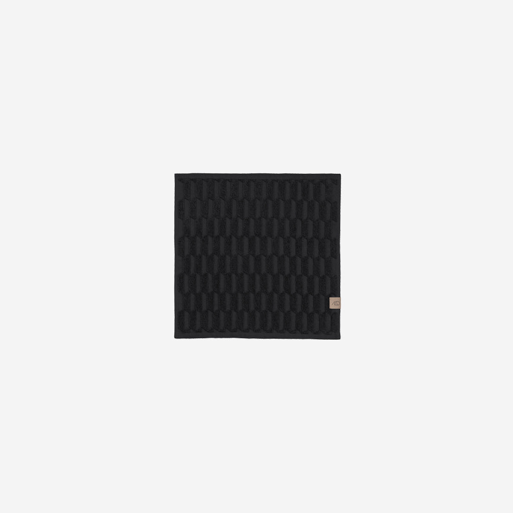 The Mette Ditmer Geo face towels are made with a high-low weaving technique in which the hexagonal shape is split into two halves. It provides an almost three-dimensional, graphic pattern with a light and a dark half. The bath mat is made of 100% OEKO-TEX® 100 certified cotton, which gives a unique plush softness and great absorbency.