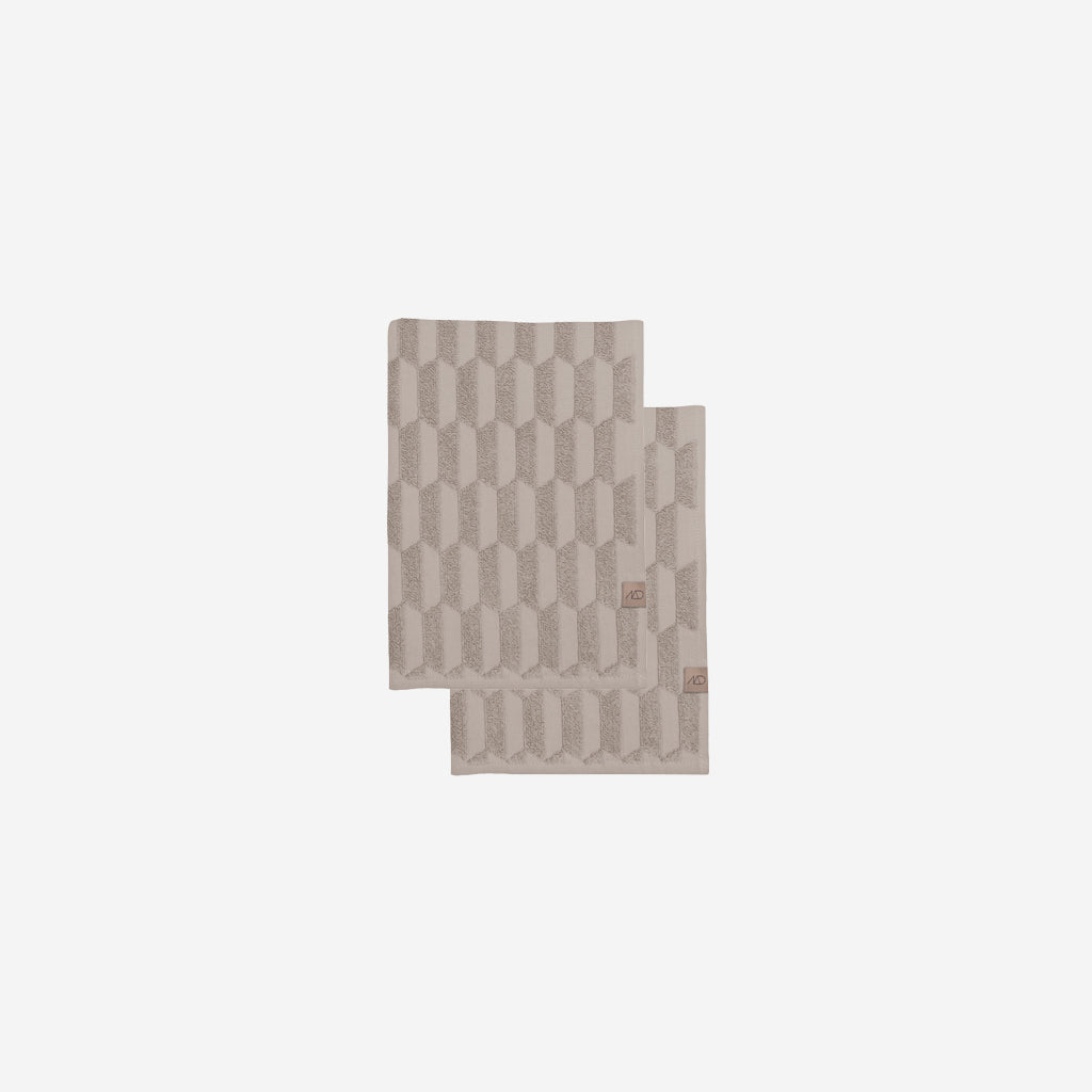 The Mette Ditmer Geo hand towels are made with a high-low weaving technique in which the hexagonal shape is split into two halves. It provides an almost three-dimensional, graphic pattern with a light and a dark half. The bath mat is made of 100% OEKO-TEX® 100 certified cotton, which gives a unique plush softness and great absorbency.