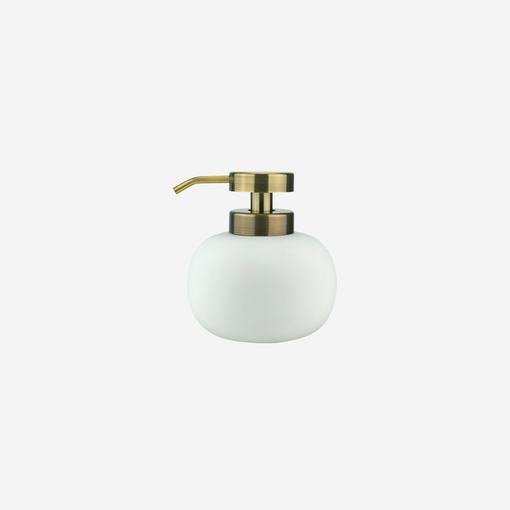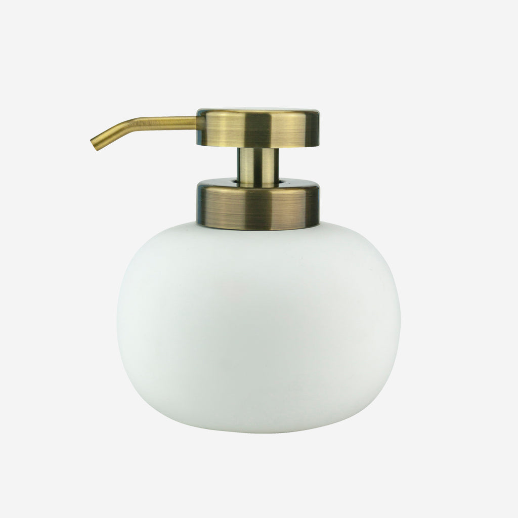 Elevate your bathroom with Mette Ditmer's Lotus low soap pump in white. The matte rubber coated ceramic and soft curved design will add a touch of elegance to any bathroom aesthetic. Complete the look with the matching dispensers in the same series.