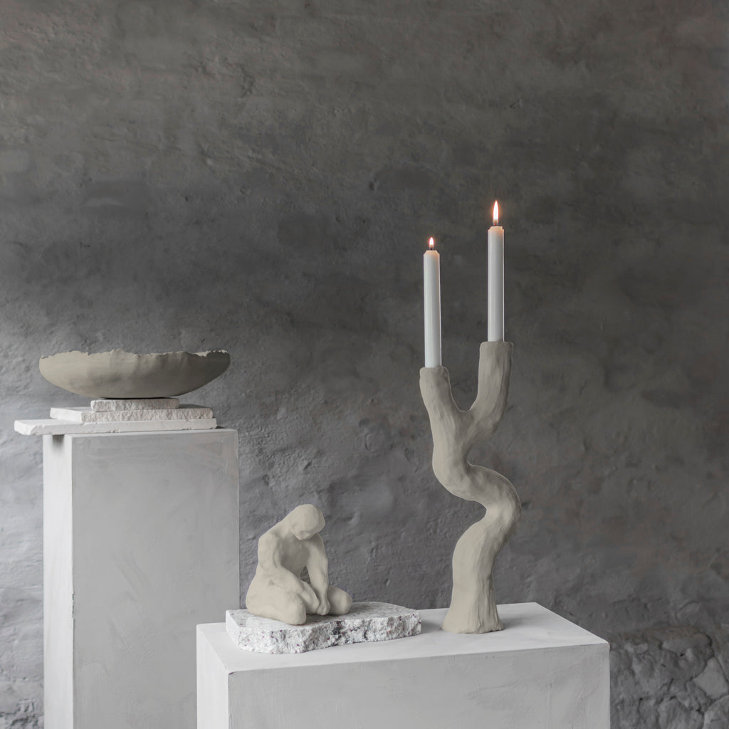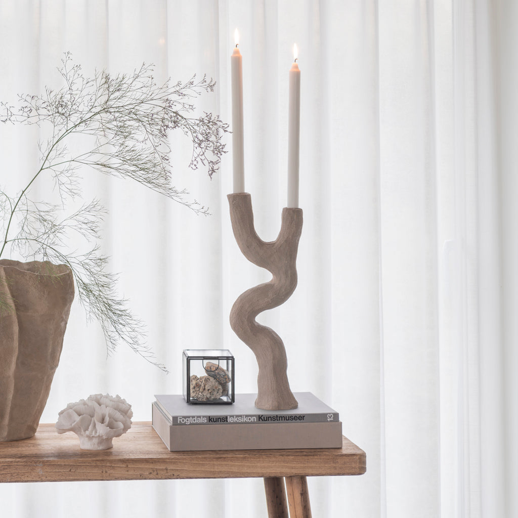 The candleholder from the ART PIECE collection brings character and edge to your decor, due to its considerable size and unique shape. The twisted shape of the candleholder creates an organic expression, which is further highlighted by the rough surface. The ART PIECE candleholder, like the rest of the products from the collection, is based on Mette Ditmer’s own ceramic craftings.