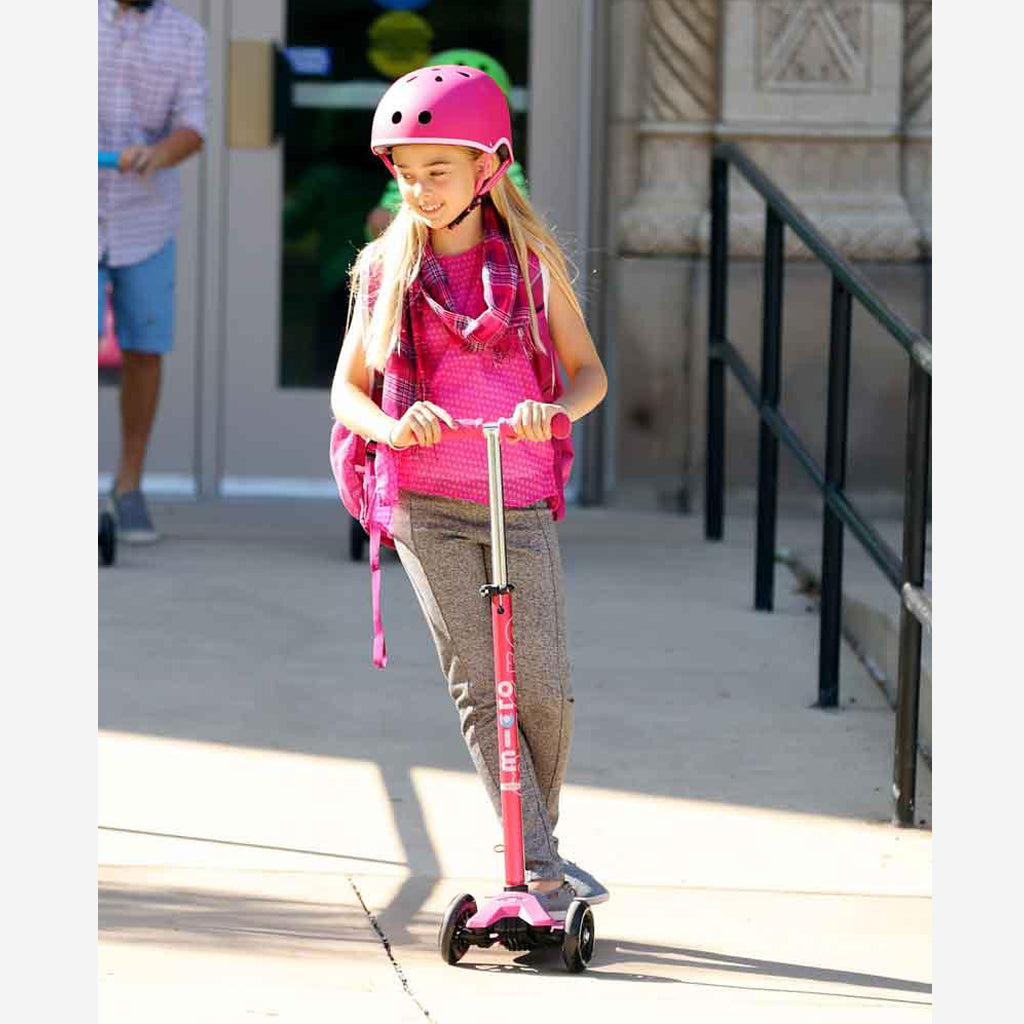 The next step up from the Mini Micro Deluxe, the Maxi Micro Deluxe 3 wheel scooter is the ideal next stage kids scooter for kids who want all the fun, stability and good safety design of the Mini but are ready for a larger, cooler and more robust scooter. The Maxi Micro Deluxe version has a new weight limit of 70kg, a unique deck with raised silicone Micro grip, and an anodised stem which not only protects your scooter from corrosion but provides a stylish look.
