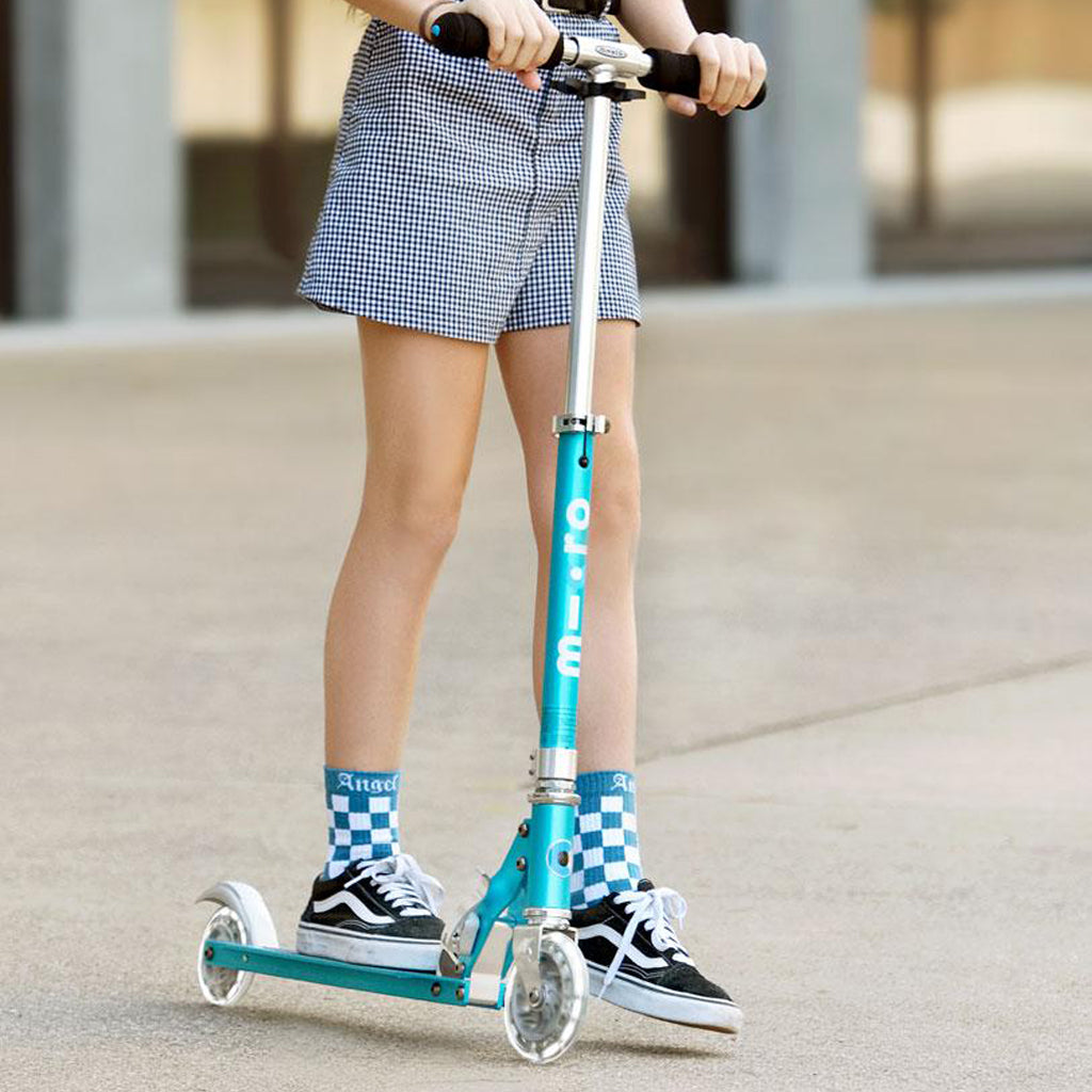 The Micro Sprite is the perfect, great value, all-round kids' scooter. Its sturdy, quality construction and range of colours make this kick scooter stand out from the crowd. With adjustable handlebars and high quality polyurethane wheels there's no better way to get your child started safely scooting on two wheels. Its light weight and handy kickstand make it a practical everyday kids'scooter which can be taken anywhere.