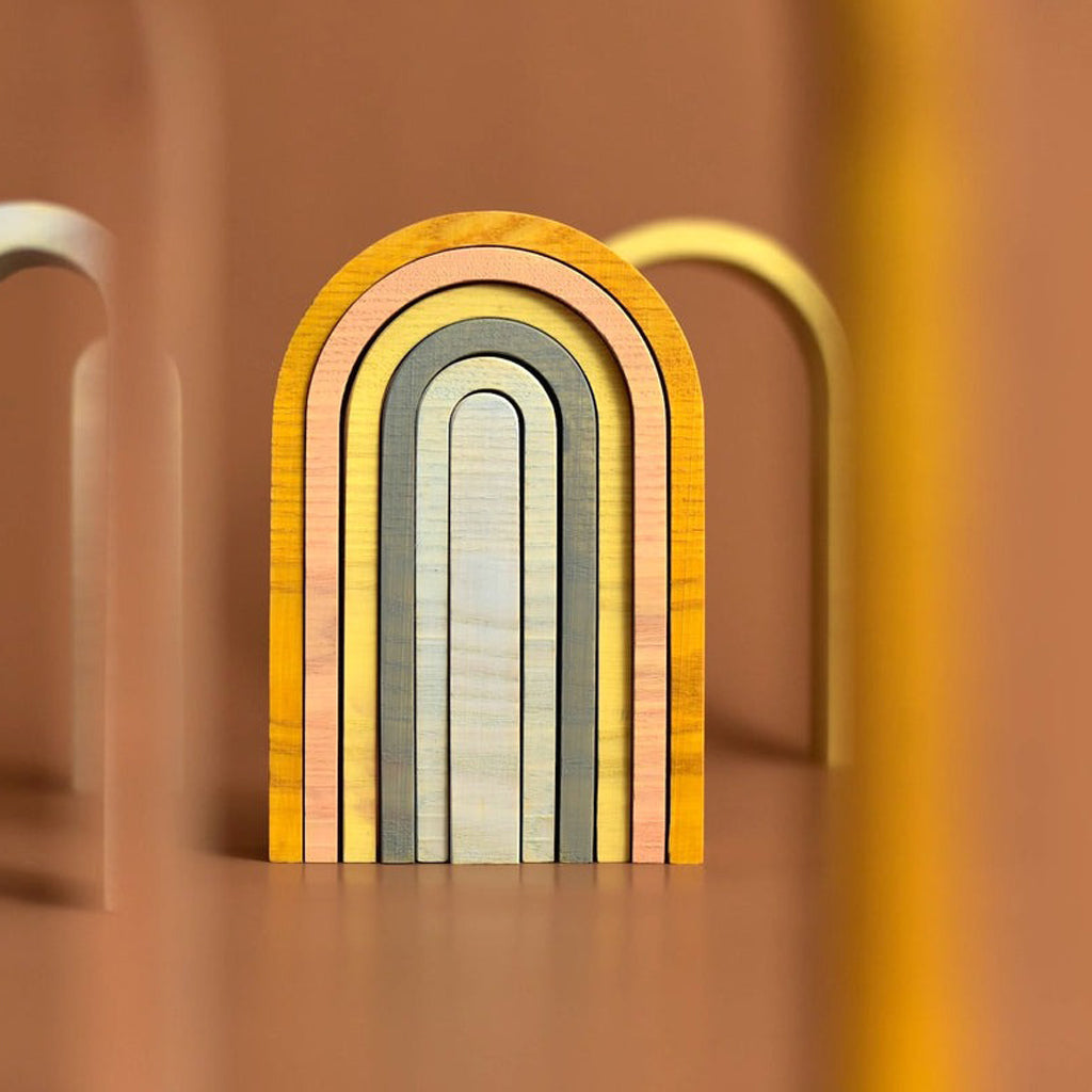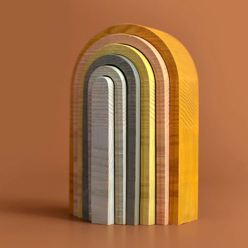 Wooden Rainbow is a must toy at home. The Rainbow stacker is for all children of different ages. Kids will find a way how to play with it. It can be a tunnel, fence, bed, bridge, anything your child can imagine. The Rainbow is made of high quality hornbeam wood. This toy helps children develop fine motor skills, attention + concentration, counting skills and imagination. The stacker is great as a pyramid and as a balance toy.