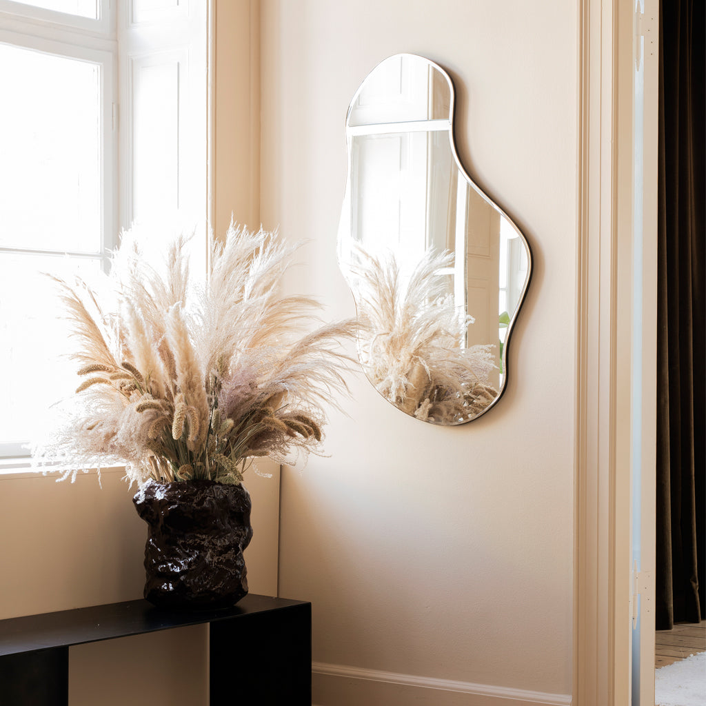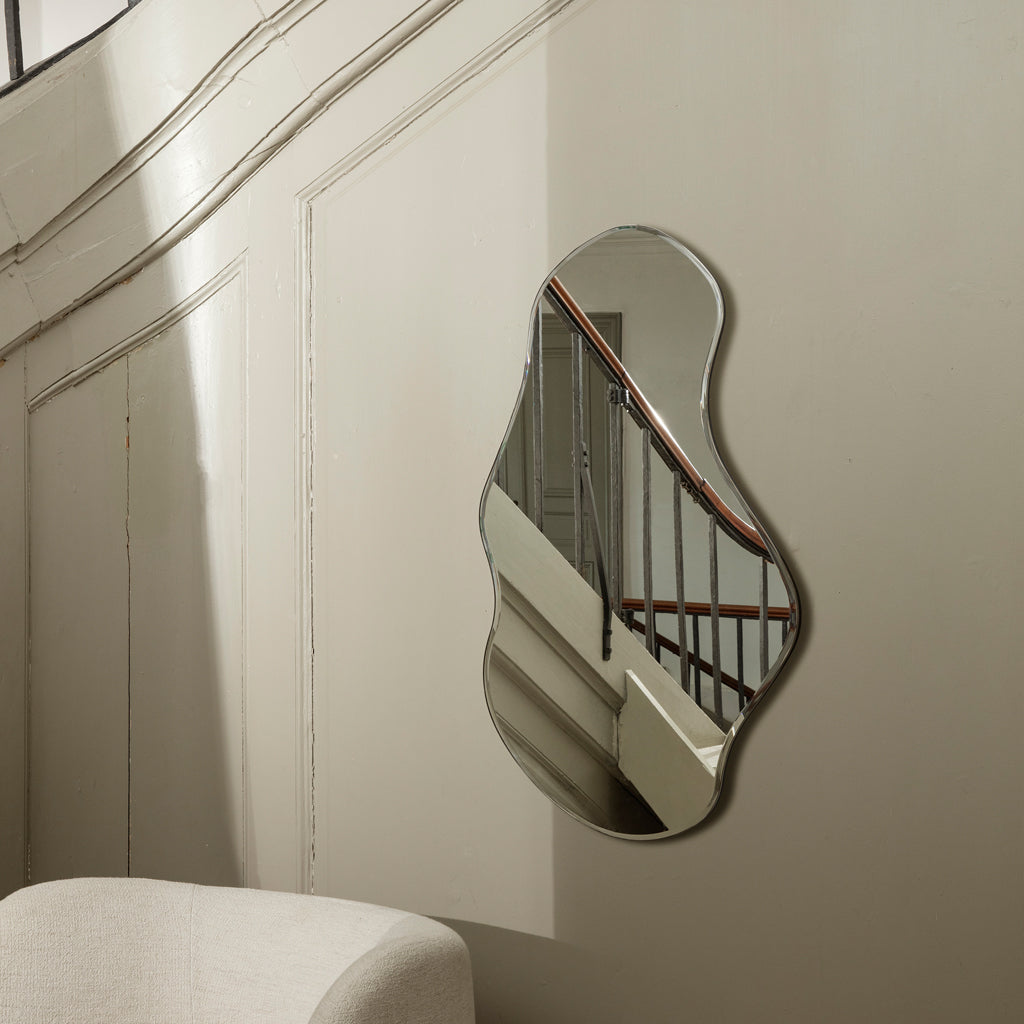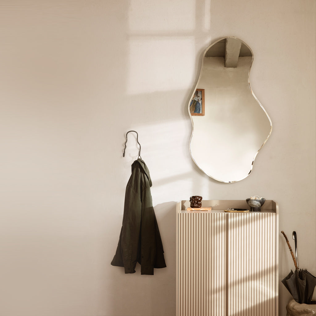 The Pond series explores organic shapes for a classic mirror with a metal frame. Inspired by free-flowing movements of water, the mirror invites open and fluid forms into your home, turning the functional mirror into a decorative wall piece. The mirror can be hung more ways so that you can find the perfect fit for the room and your needs.