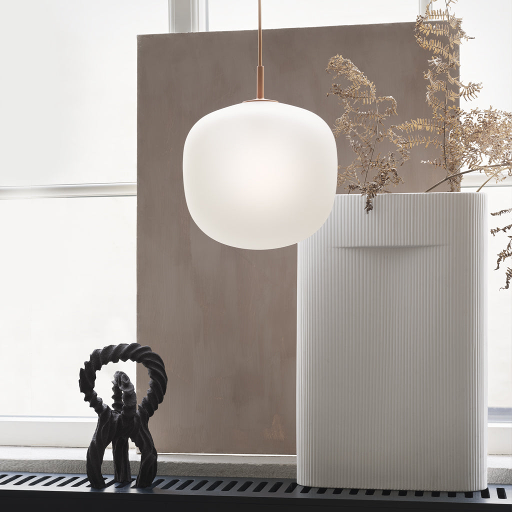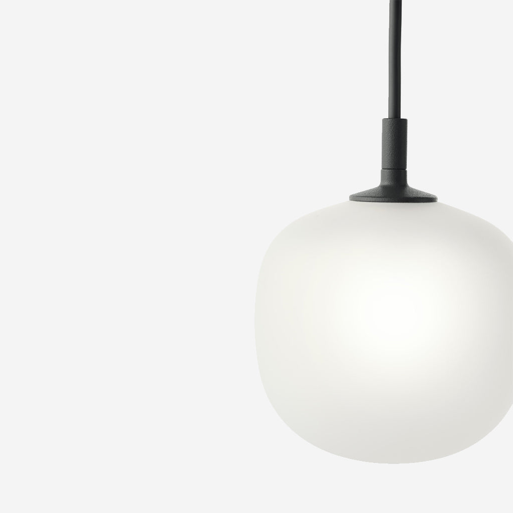 The Rime Pendant Lamp brings an elegant perspective to the glass pendant lamp through its semi-transparent glass that has been sandblasted for a refined expression. The design features a characteristic form, inspired by the shape of acorns, complemented by its powder-coated top-part, pendant tube and cord in a matching color for a subtle touch. The design is available in four colors across four sizes, allowing you to use the design on its own or in linear formations or playful clusters for a modern chandelier.