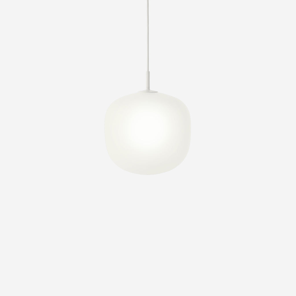 The Rime Pendant Lamp brings an elegant perspective to the glass pendant lamp through its semi-transparent glass that has been sandblasted for a refined expression. The design features a characteristic form, inspired by the shape of acorns, complemented by its powder-coated top-part, pendant tube and cord in a matching color for a subtle touch. The design is available in four colors across four sizes, allowing you to use the design on its own or in linear formations or playful clusters for a modern chandelier.