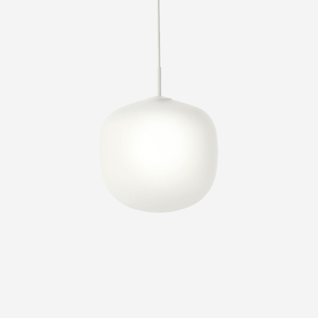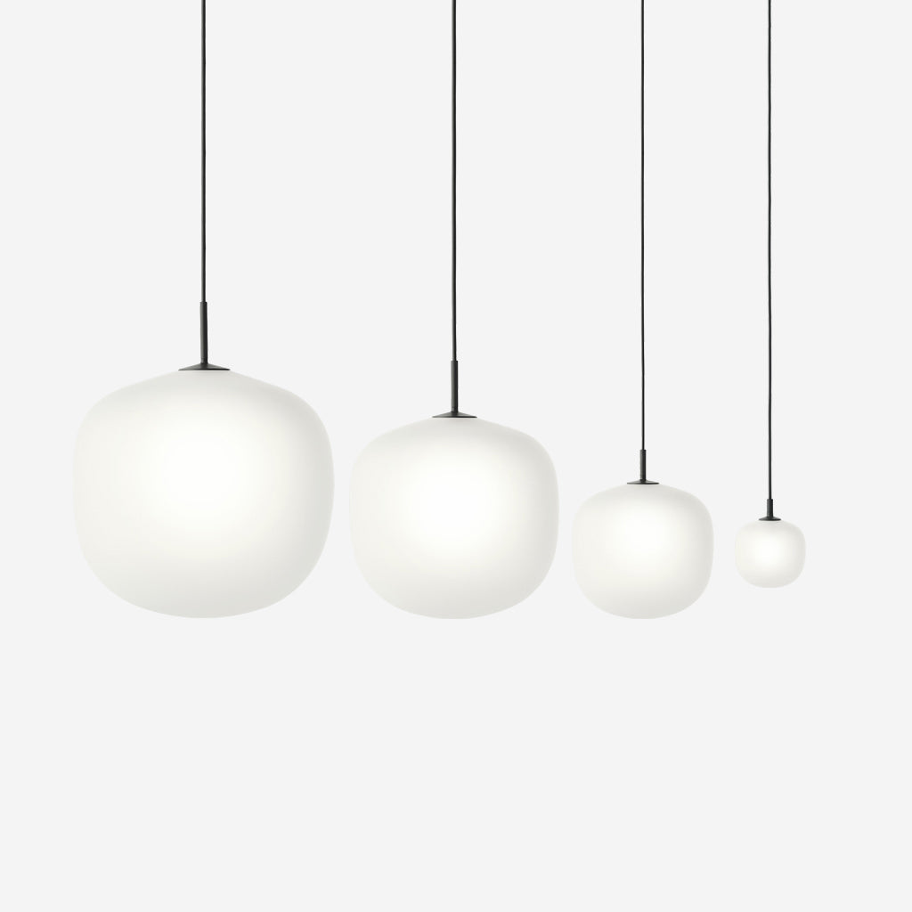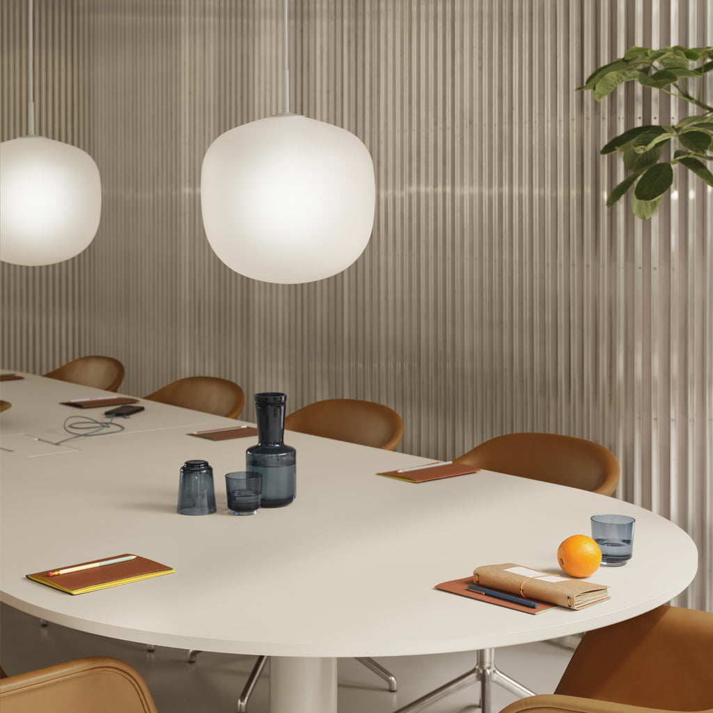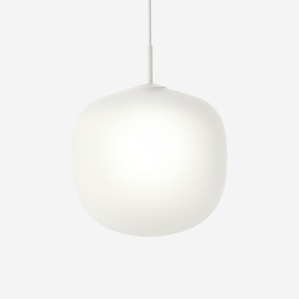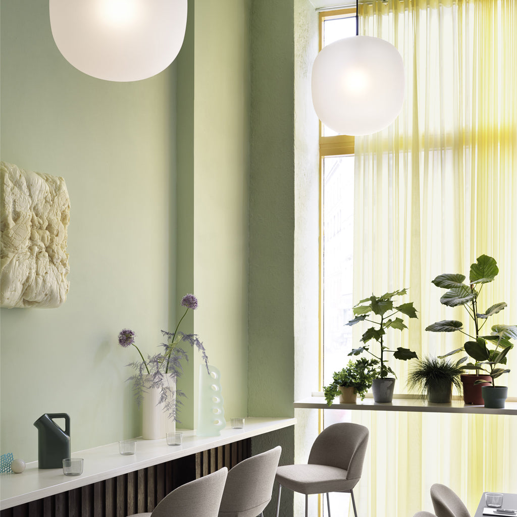The Rime Pendant Lamp brings an elegant perspective to the glass pendant lamp through its semi-transparent glass that has been sandblasted for a refined expression. The design features a characteristic form, inspired by the shape of acorns, complemented by its powder-coated top-part, pendant tube and cord in a matching color for a subtle touch. The design is available in four colors across four sizes, allowing you to use the design on its own or in linear formations or playful clusters for a modern chandelier.