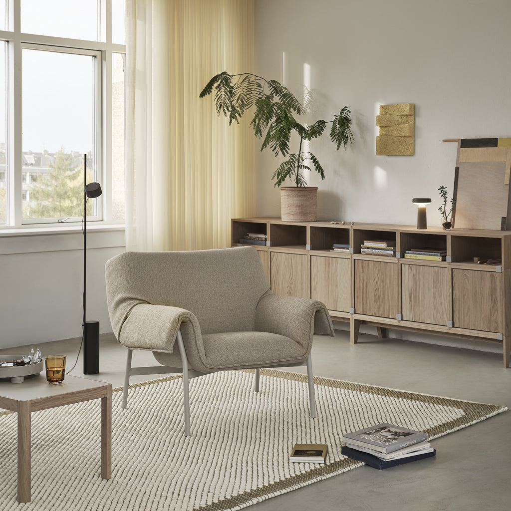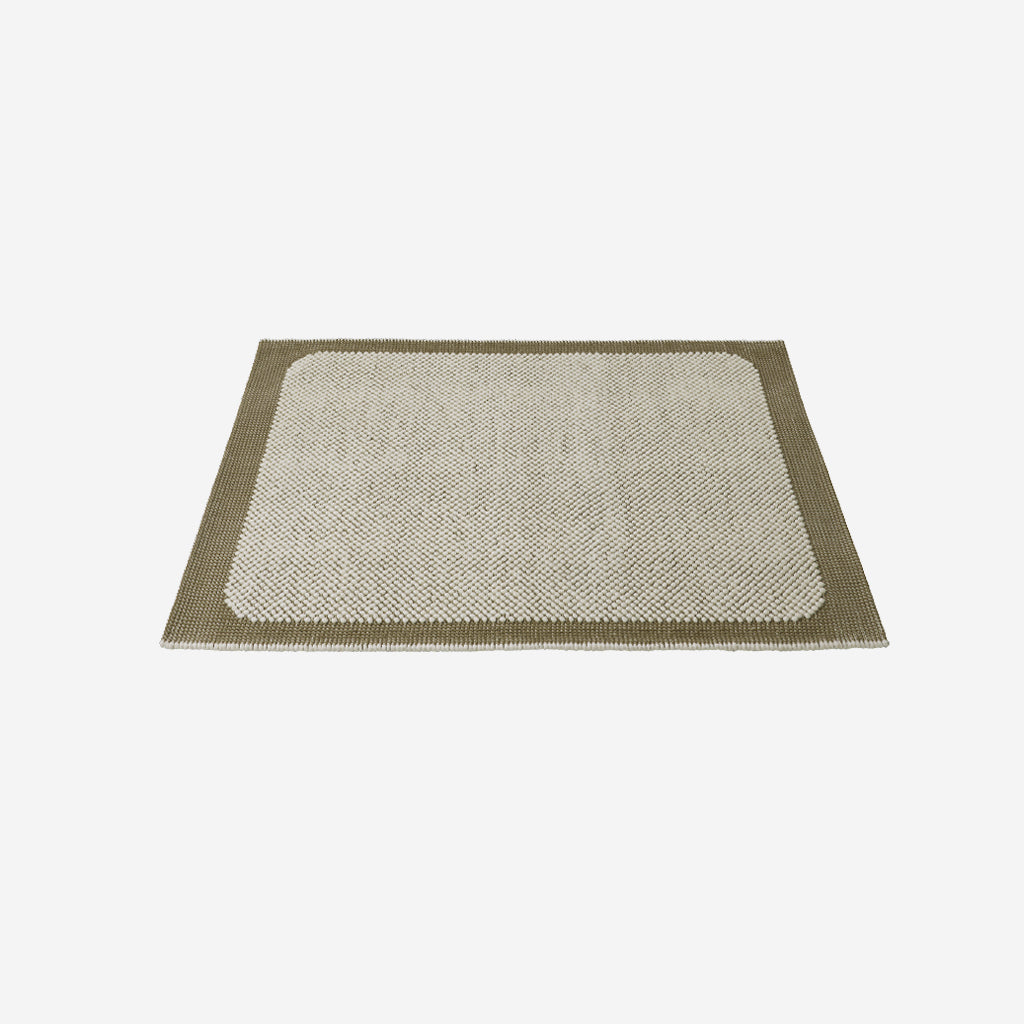 Pebble Rug has a diverse and tactile surface, inspired by the sensuous feeling of walking across a pebbled beach. Its handwoven structure contrasts the feel of its soft, wool loops with a canvas base in a sturdier wool quality. Pebble Rug has a distinct and modern woven texture for any home, hospitality setting, lobby, hotel space or co-working area.