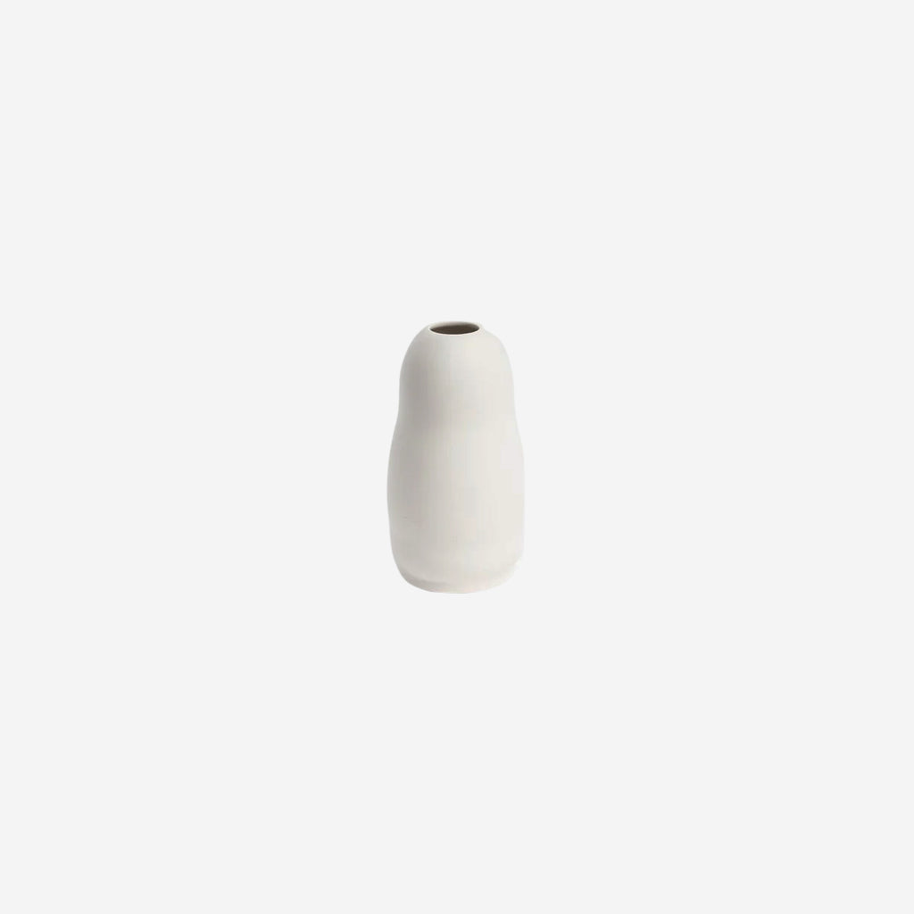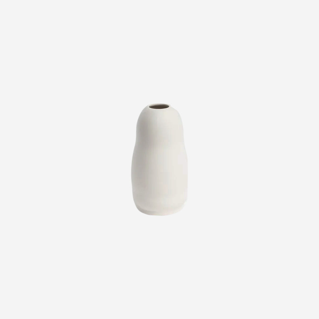 Inspired by Vietnamese Artisans, The Harmie White Leo Vase, gives that hand-crafted feel, moulded into organic seed-like shapes, in a modern colour palette.