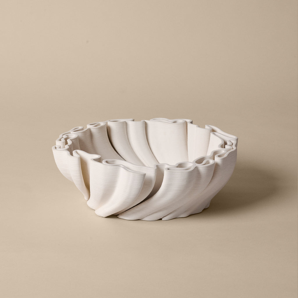 The Dedali Bowl builds on the intricate, maze-like design of the Dedali Vase, inspired by the patterns of labyrinths. Made with 3D-printed ceramic, it showcases precise, detailed textures that add a modern and tactile quality. Both functional and decorative, the bowl is perfect for displaying fruit and decorative items or standing as a standalone centrepiece. Combining practicality with artistry, the Dedali Bowl brings a delicate, sophisticated touch to any space.
