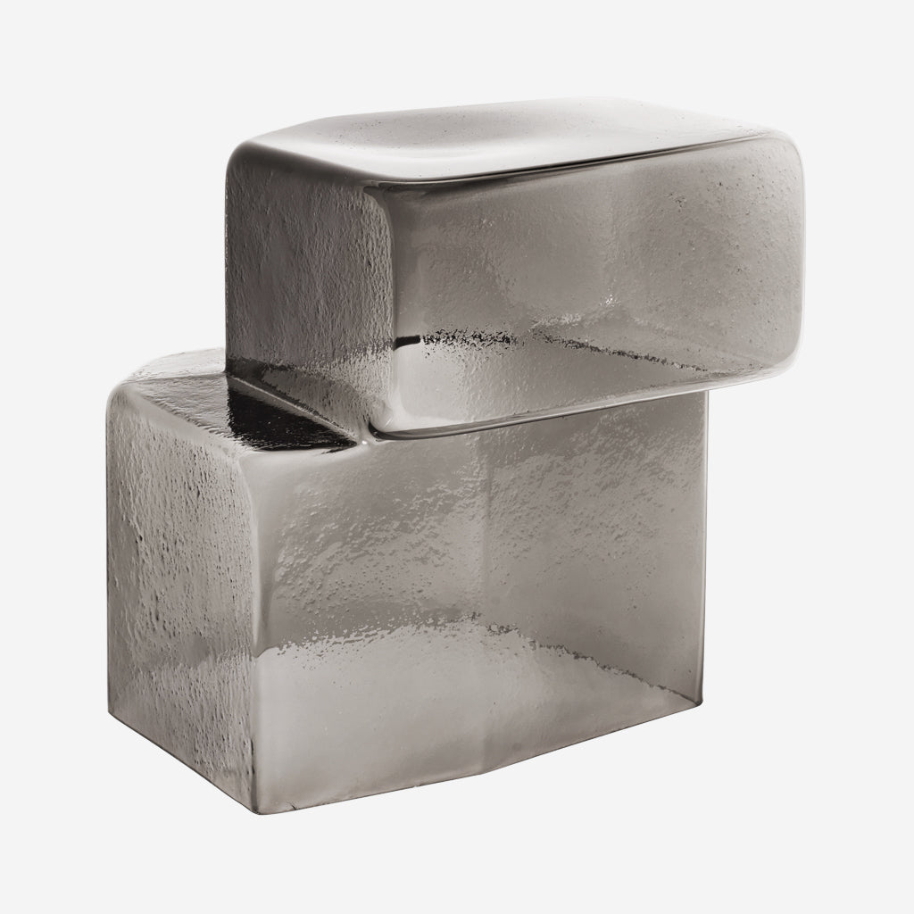 The Oscil Sculpture is a sculptural glass piece that blends artistic expression with intricate craftsmanship. Named ‘Oscil’ to evoke the concept of oscillation, its dynamic form reflects a sense of balance and movement. Made from mouth-blown recycled glass and crafted using a brick mould, the piece highlights the skill required to create its large, textured shape. Its translucent glass and subtle colouring convey a sense of lightness, making the Oscil Sculpture a striking decorative element. This product is a delicate work of art and is intended solely as a sculpture. It is not designed to function as a table, seat, or any form of functional furniture. For decorative purposes only.