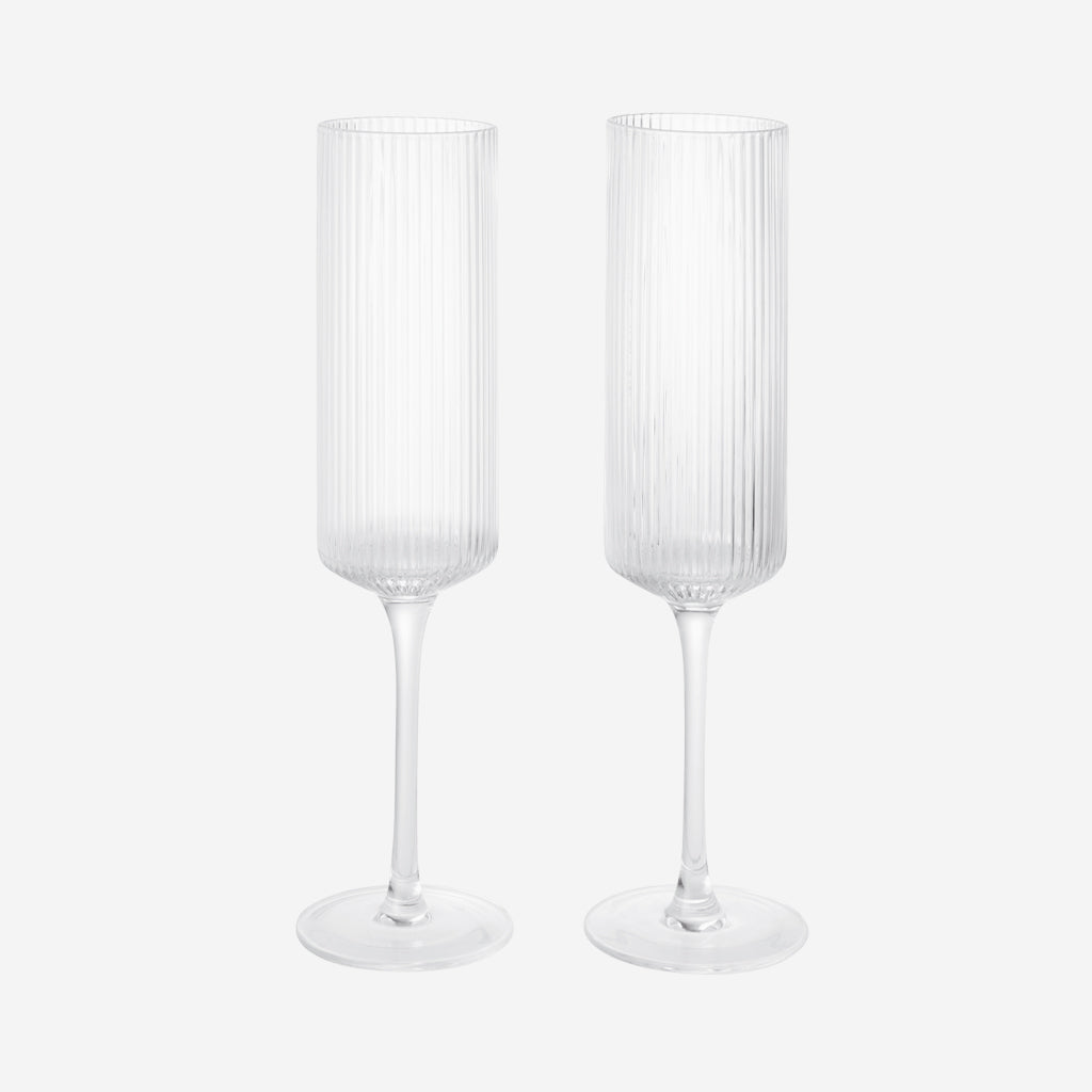The Ripple Champagne Flutes bring a refined, elongated silhouette to the beloved Ripple series, perfectly suited for sparkling wines. Mouth-blown into the mould, each glass features the signature rippled surface that adds texture and a sense of movement. Their tall, slender shape enhances bubbles and aroma, making any toast feel celebratory.