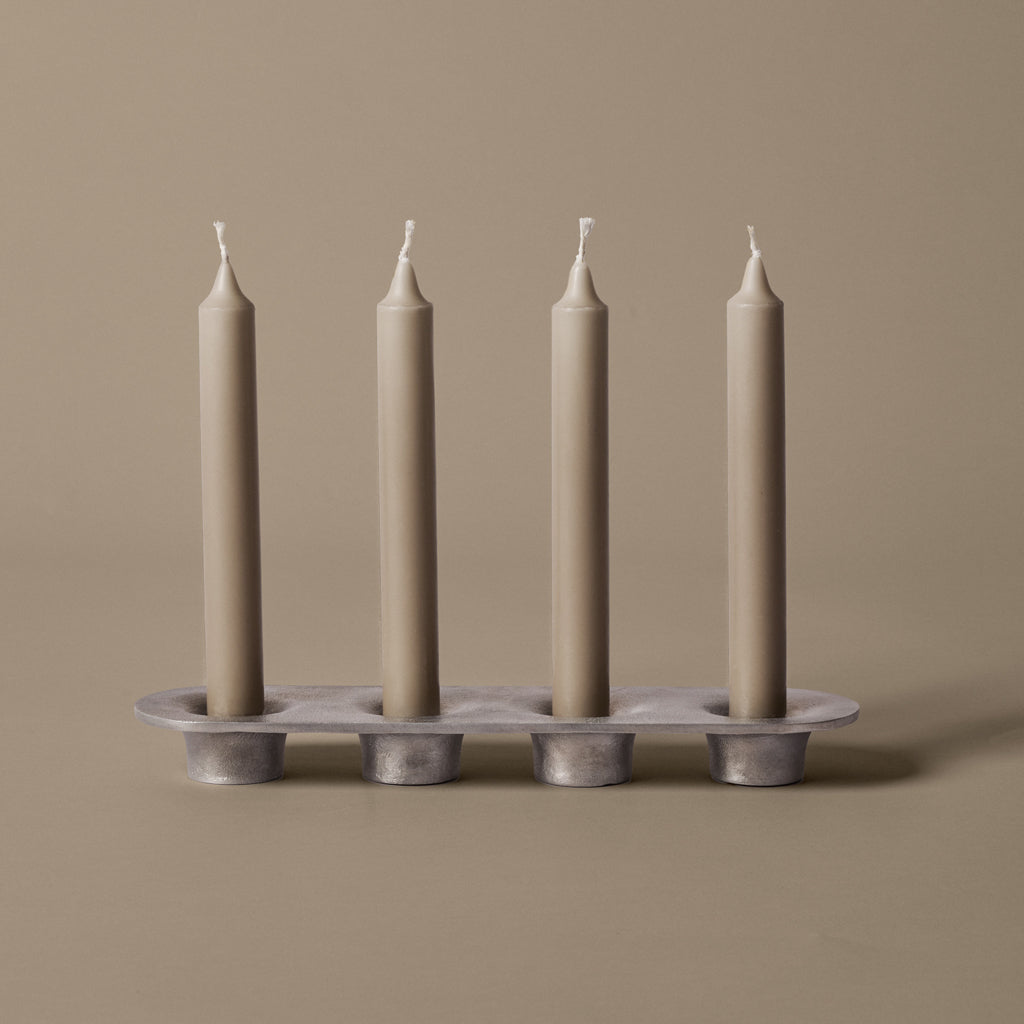 The Soothe 4 Candle Holder stands out with its understated elegance and pared-back design. Crafted from cast aluminium with a textured sand-cast finish, it holds four candles, making it a refined alternative to the traditional Scandinavian Advent wreath. With gently sculpted forms that partially cradle each candle, it brings a sense of balance and quiet serenity to both everyday rituals and seasonal moments.