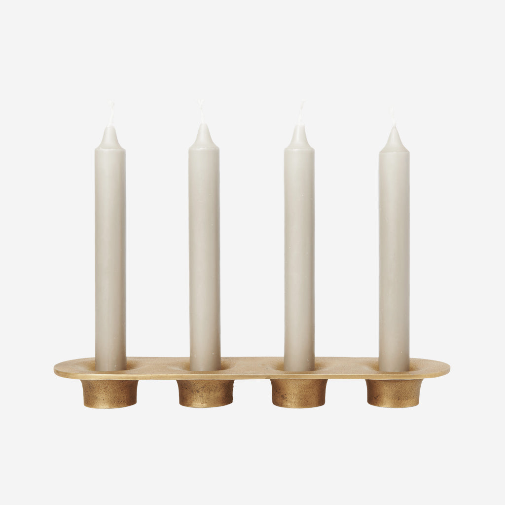 The Soothe 4 Candle Holder stands out with its understated elegance and pared-back design. Crafted from cast aluminium with a textured sand-cast finish, it holds four candles, making it a refined alternative to the traditional Scandinavian Advent wreath. With gently sculpted forms that partially cradle each candle, it brings a sense of balance and quiet serenity to both everyday rituals and seasonal moments.