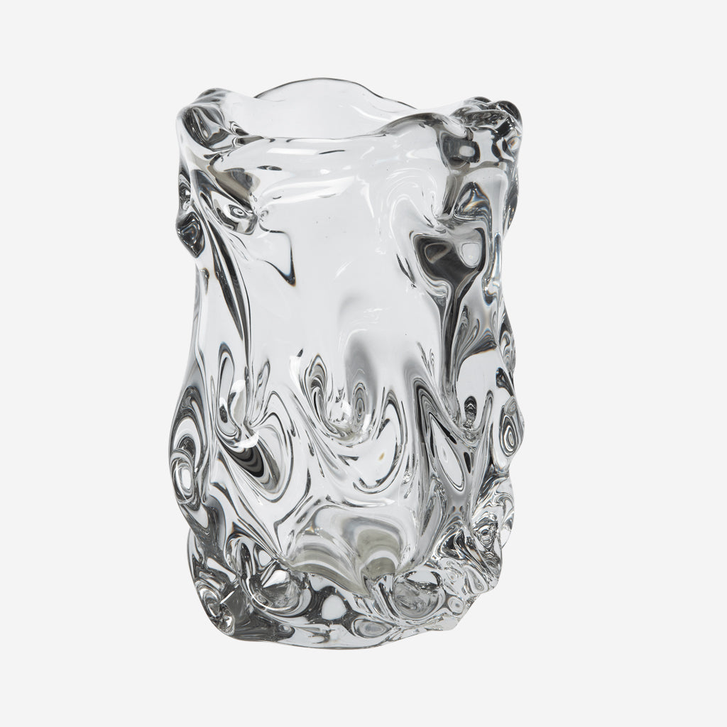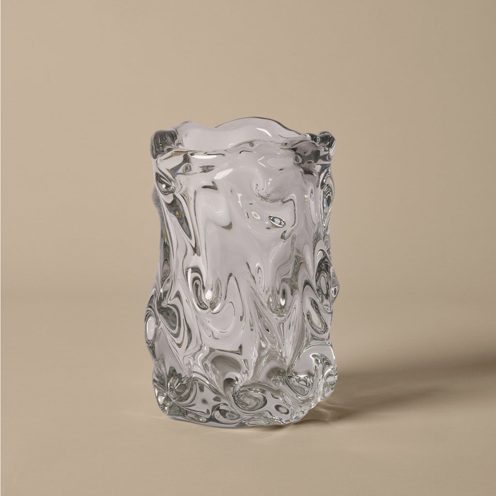 The Virelle Vase is crafted from mouth-blown glass with a form that captures gentle motion. Its rippling silhouette evokes the feeling of swells and vibrations, bringing a fluid, sculptural presence to the room. A considered piece that adds a quiet sense of movement to your space.