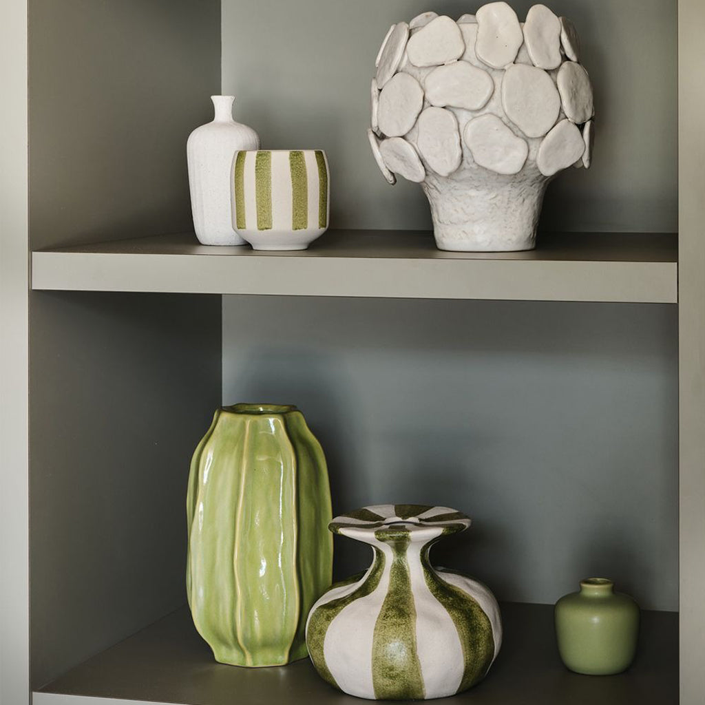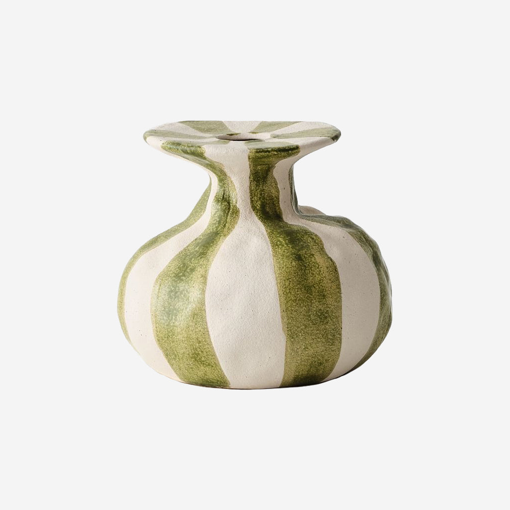 A fun Oreio décor piece featuring green stripes. Perfectly style with a single stem or as a feature on its own to add charm to any setting.
