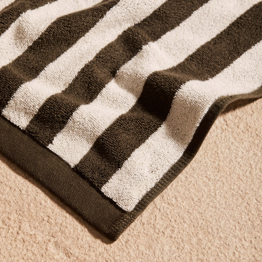 L&M Home's timeless Raye range features a reversible colourway. The soft Natural stripe contrasting against olive ‘green’ makes a subtle statement in any bathroom, by the pool or at the beach. Generous sizes and 650gsm ensure these towels are ultra soft and absorbent.