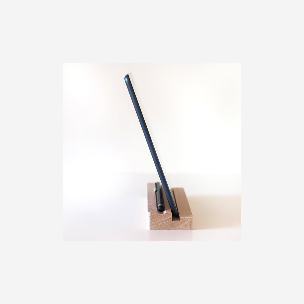 Dock is a simple and versatile design that accommodates business cards, small notepads, and mobile devices. Featuring an angled slot and half pipe groove to hold your pen or stylus, dock will ensure your desk or working surface remains clean and organised.