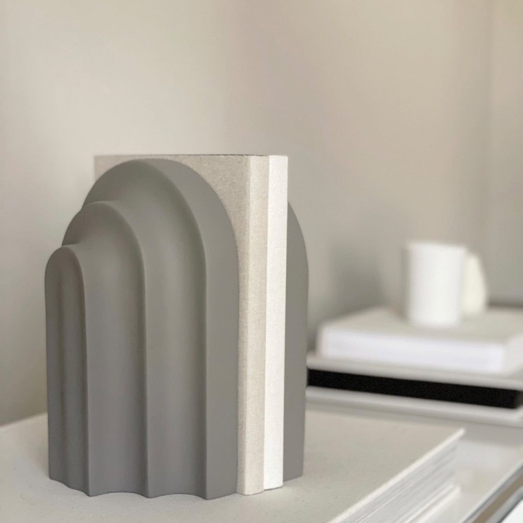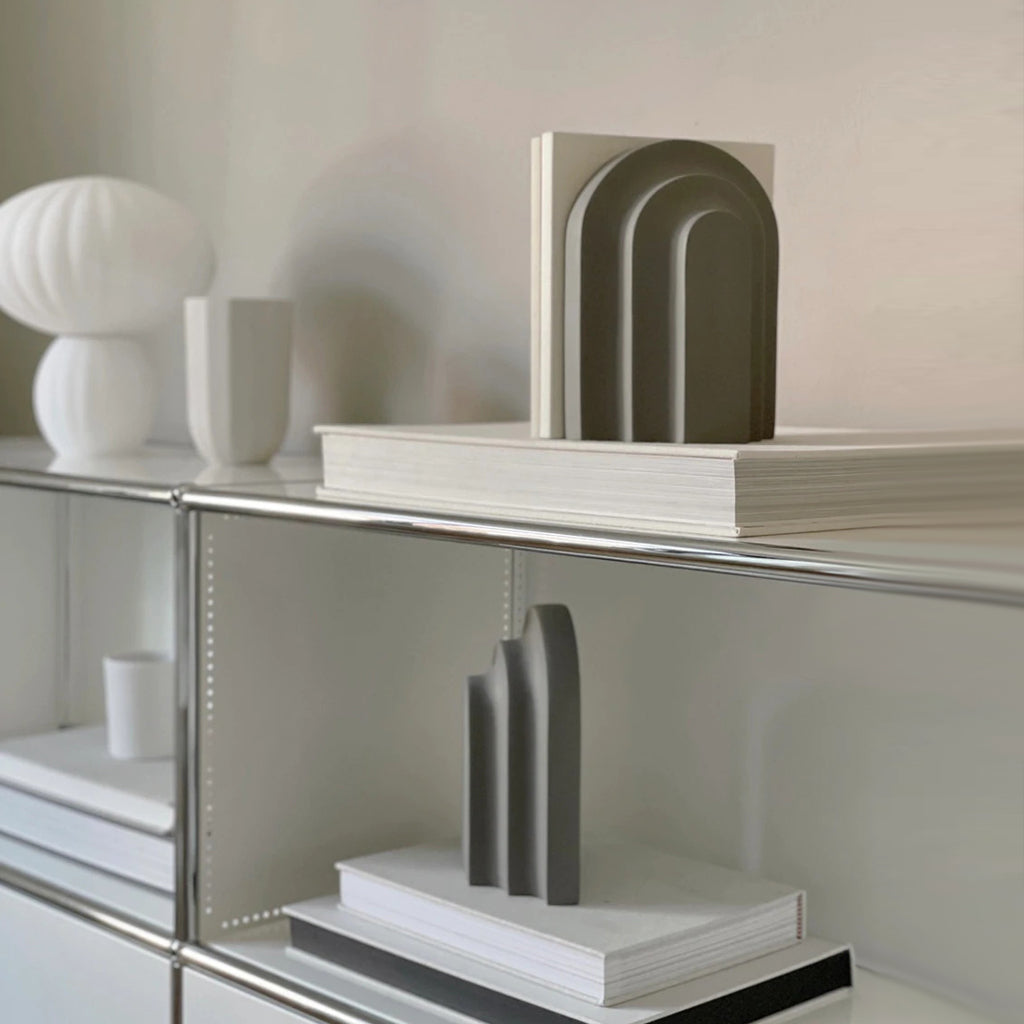 Together with a row of books Arkiv forms a small graphic ensemble of arches and blocks. Inspired by the function and aesthetic of the classic architectural arches and columns. With its vivid shape, the bookend catches the light and throws harmonious shadows revealing a fascinating and delightful piece to the eye. Lean your favourite books against Arkiv, lay it horizontal to function as a paper press or use it as a decorative piece of art.