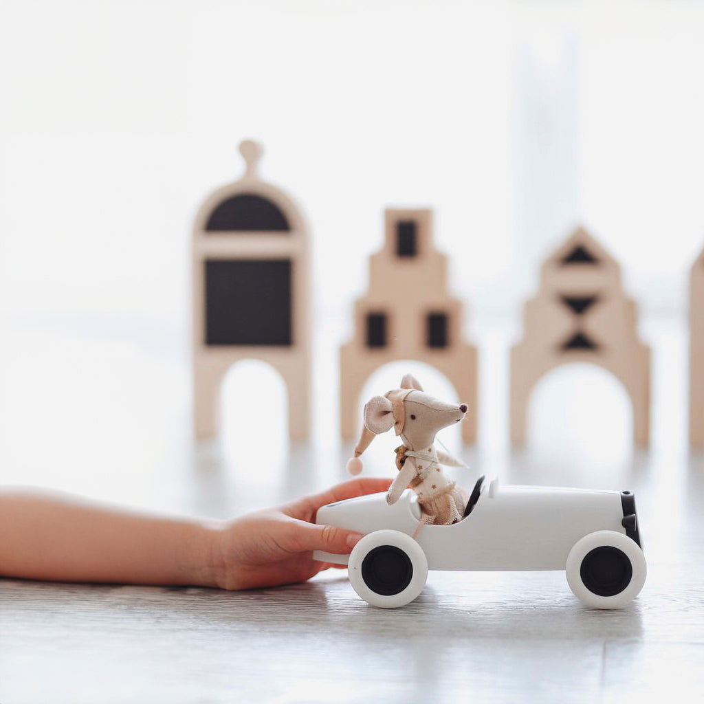Ooh Noo Wooden Grand Prix Racing Car White Wooden Car Ooh Noo - [store_name]