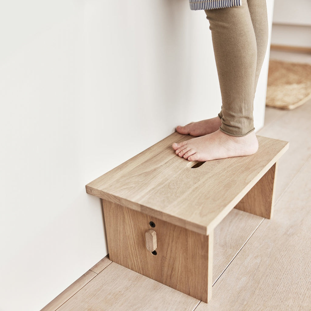 The Arca Stool is a addition to the Arca series, a collection of furniture designed for children, made from durable and functional materials, while maintaining the same high-quality craftsmanship. Crafted from solid oak and manufactured in the EU, this stool seamlessly blends modern style with reliability. The wood is treated with white-pigmented oil. To ensure a long life for your wooden furniture, we recommend regular follow-up treatments