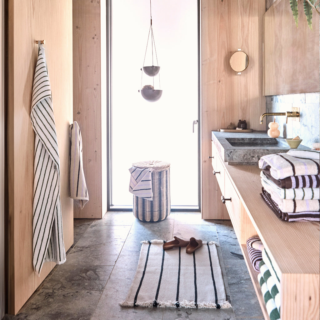 The Lina Bath Mat is made to keep your feet nice and warm. The mat has a simple and beautiful design with fringes along the side.