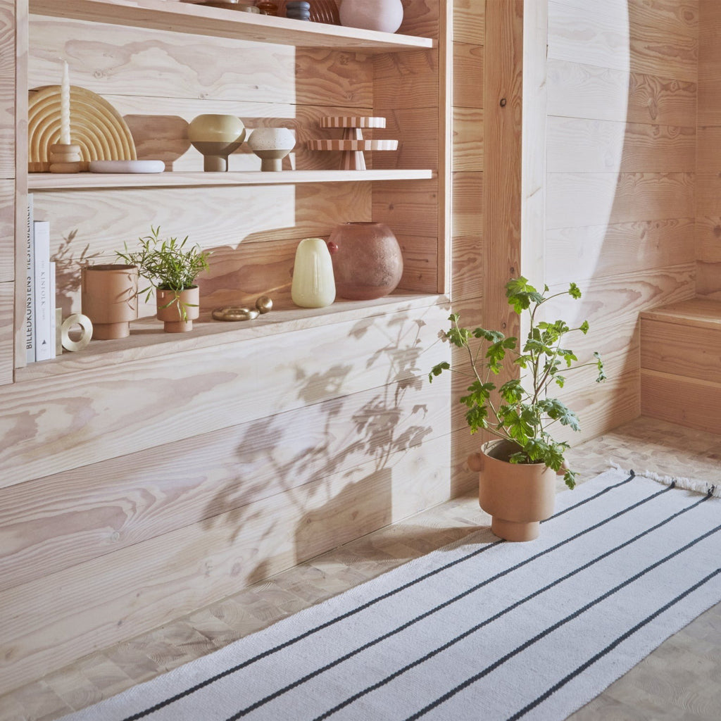 The Lina Floor Runner is made to keep your feet nice and warm. The runner has a simple and beautiful design with fringes in the ends. Create a personal expression in the entrance or hallway.