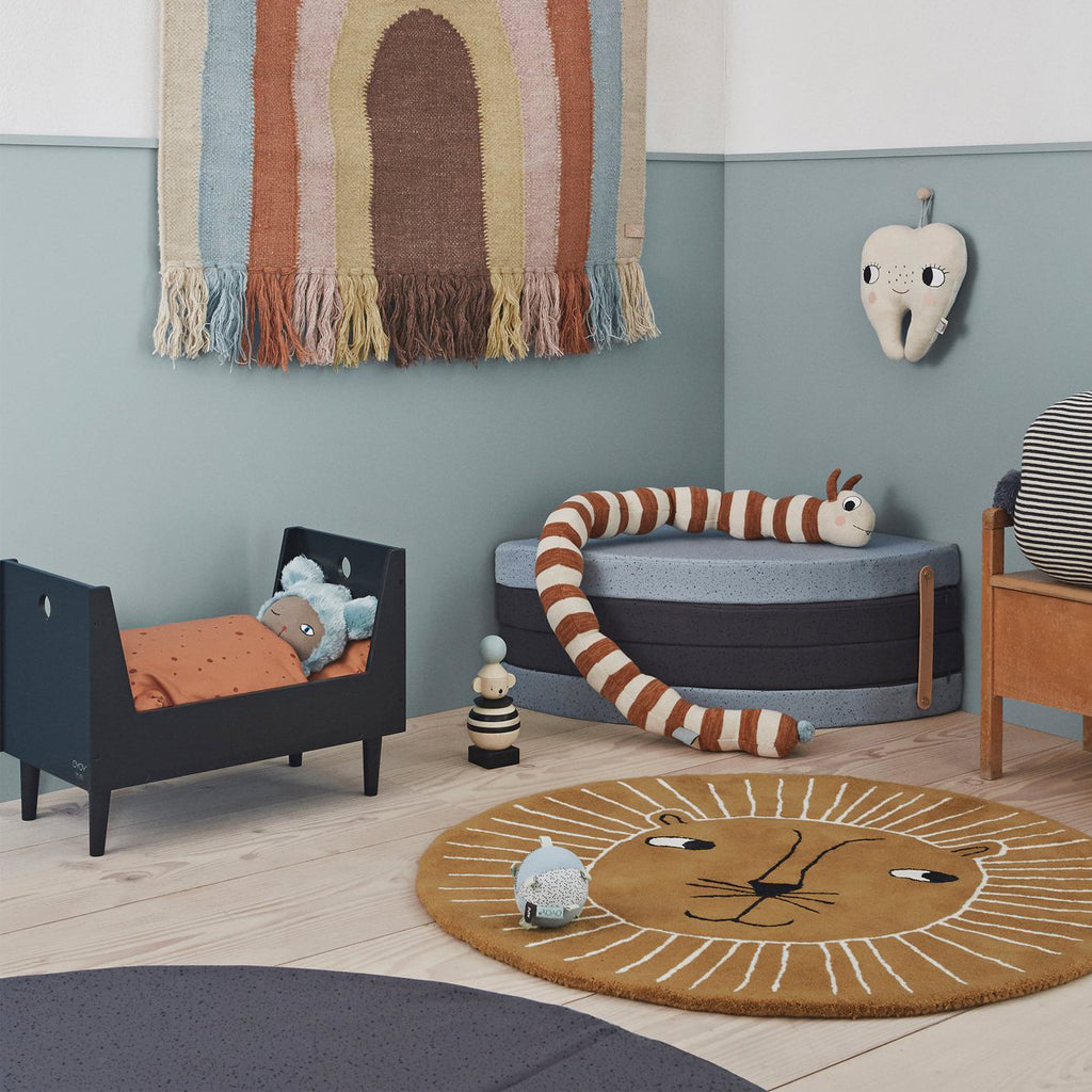 The Lion Rug illustrates a playful lion and is coloured in caramel shades and marked out in white and black giving the rug a very cute and adorable look.