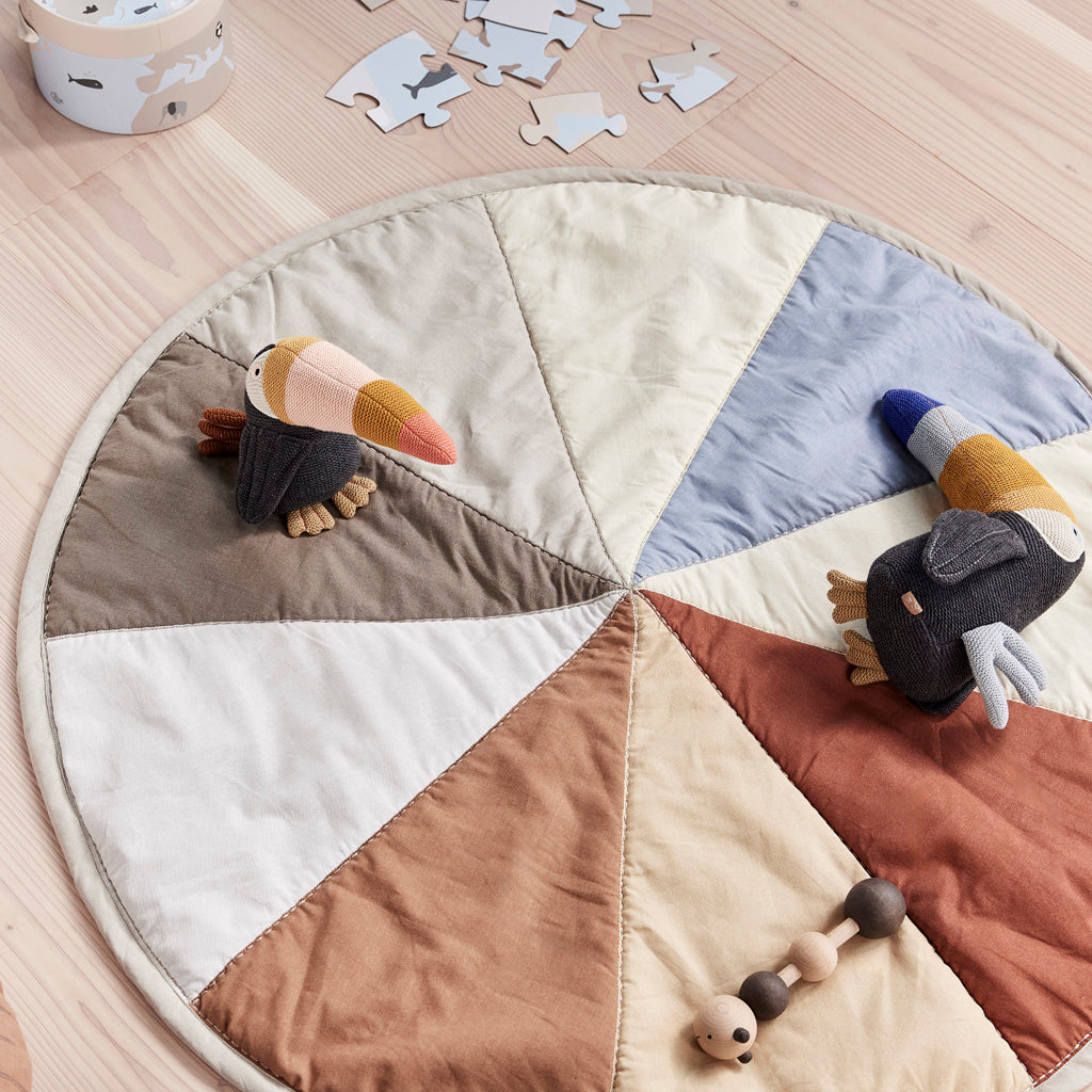 The Moni Quilted Blanket is a perfect companion for your little one's explorations and playtime adventures. Designed with both comfort and fun in mind, this blanket is the ideal play surface for your baby's active and imaginative moments. The quilted design features intricate heavy stitching patterns that not only enhance the blanket's aesthetic appeal but also contribute to its durability. The heavy stitching creates a series of small pockets, preventing the filling from shifting and ensuring long-lasting quality. This construction also adds a subtle texture to the blanket, stimulating your baby's senses.