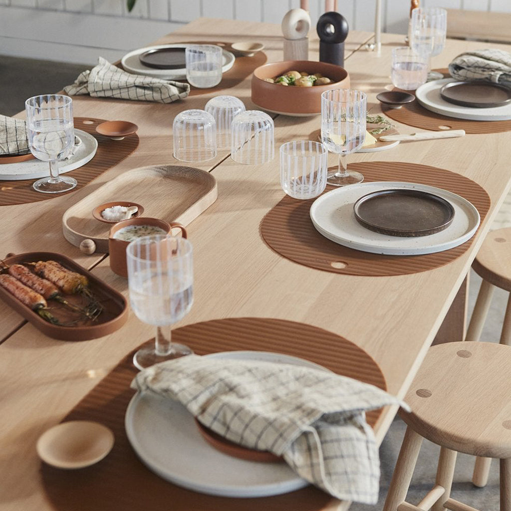 The surface of the OYOY Ribbo placemat is ribbed and has an oval shape that makes it perfect under plate. All OYOY placemats are easy to clean and wipe off after use. They are suitable for both indoor and outdoor use.