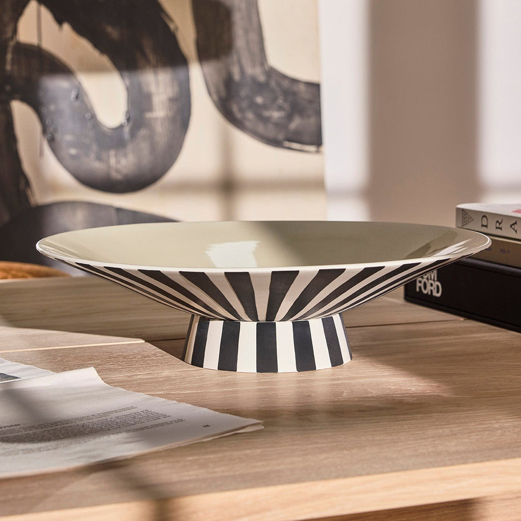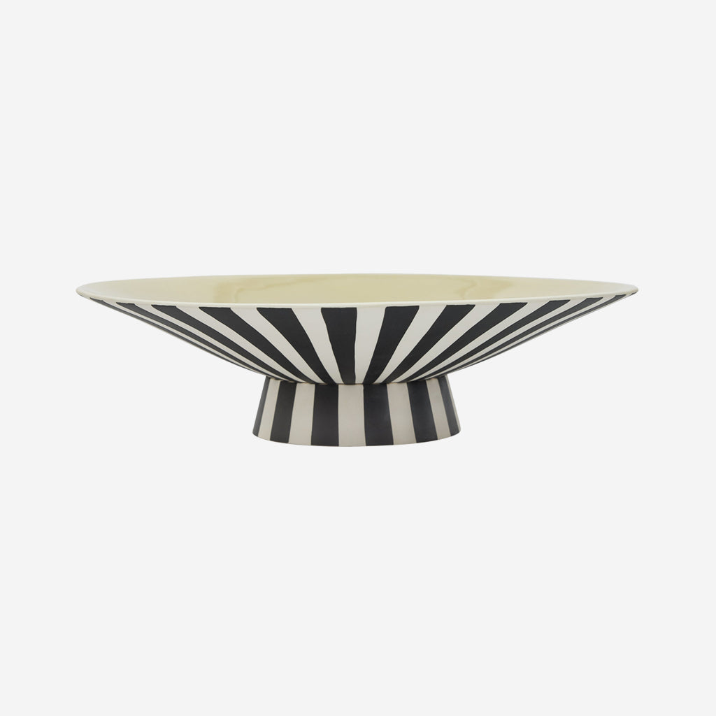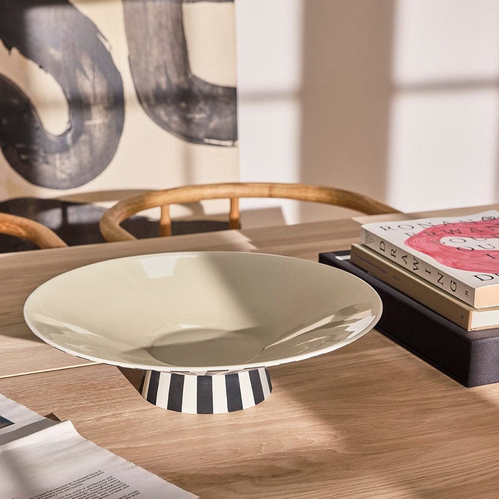 The OYOY Toppu Centerpiece Low in white and black brings bold elegance to your table or shelf. Handcrafted from ceramic and featuring the iconic striped pattern of the Toppu series, this wide, shallow bowl is perfect for serving fruit, styling seasonal décor or making a minimalist statement all on its own. With its graphic lines and Scandinavian charm, it’s a timeless piece that elevates any space.