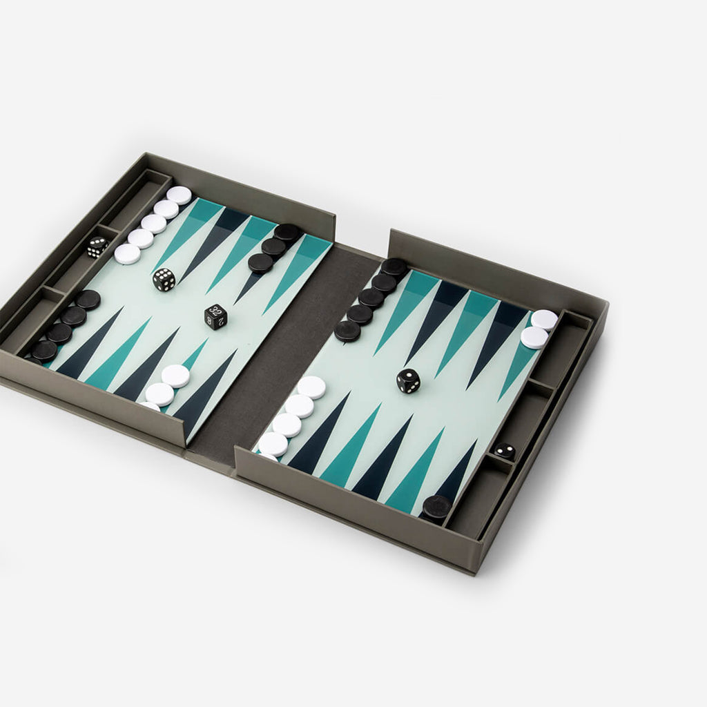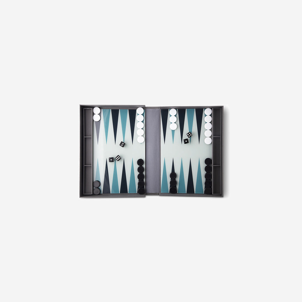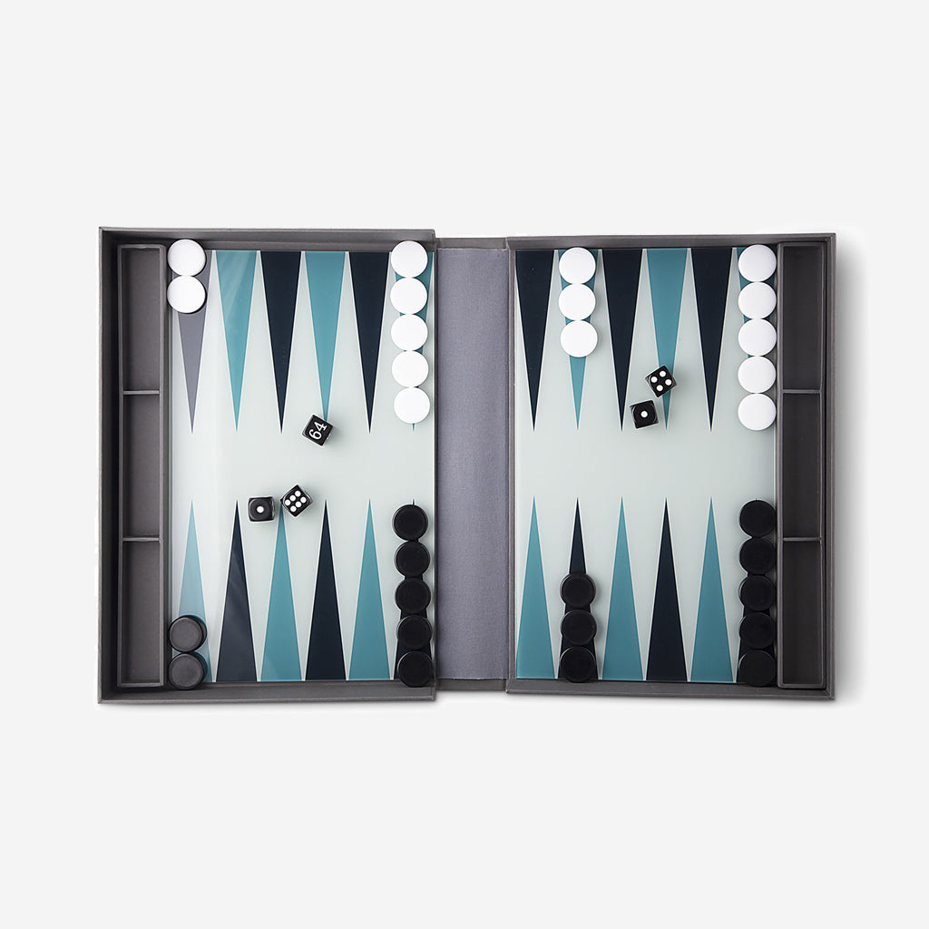 One of the oldest known board games reinvented to look equally good played or displayed in a concept called Coffee Table Games. Backgammon opens up as a book comprising of two thin acrylic boards for the playing area, durable plastic game pieces and instructions.