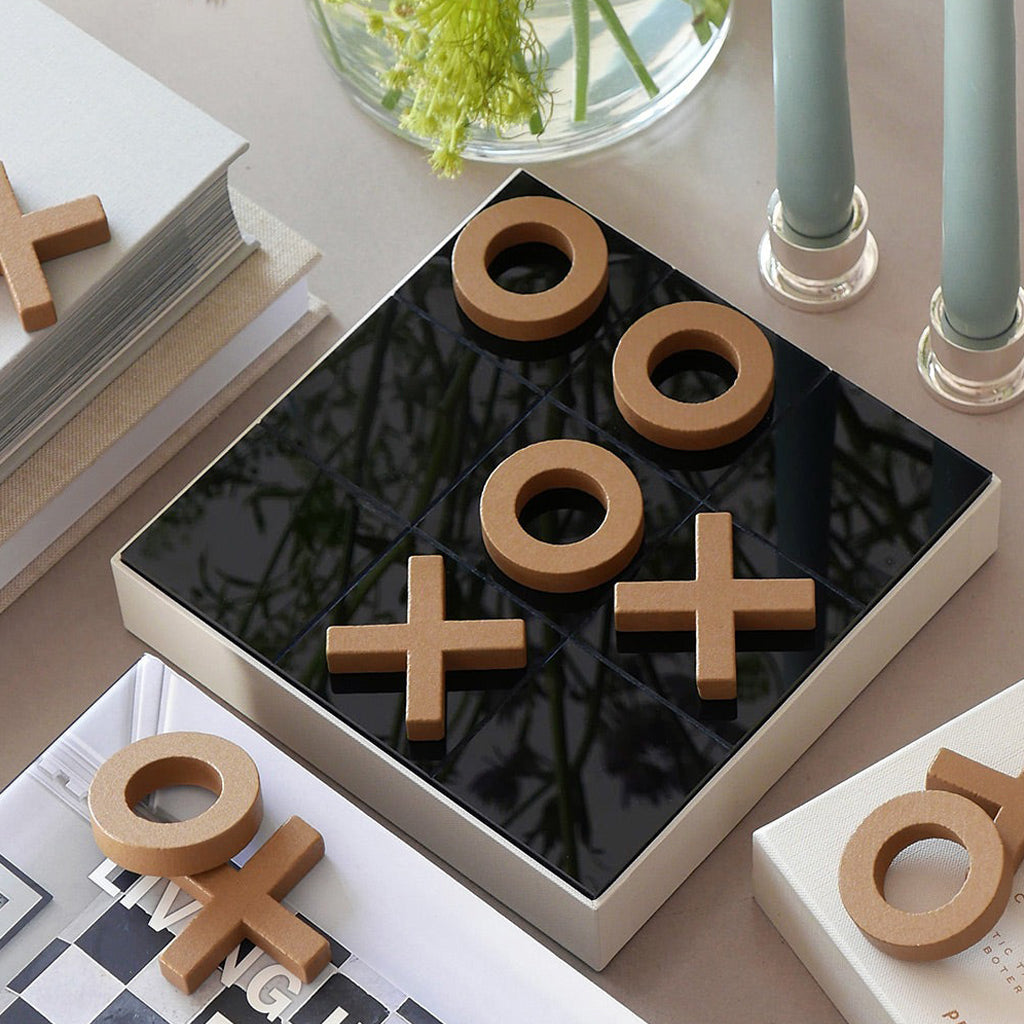 Introducing a modern twist to your beloved childhood game, Tic Tac Toe, where aesthetics blend with entertainment. Crafted from MDF wood with a fine layer of mounted acrylic on top, the game exudes elegance. The board measures 19x19 cm and includes lacquered wooden pieces. It also has easy-to-read instructions in English, French, and German. Suitable for two players, ages 5+. Immerse yourself in the world of classic board games with our exquisite Tic Tac Toe, perfectly designed to complement our concept of "Coffee Table Games," elevating your home wherever you place it. Whether you play or display it, it's a guaranteed win.