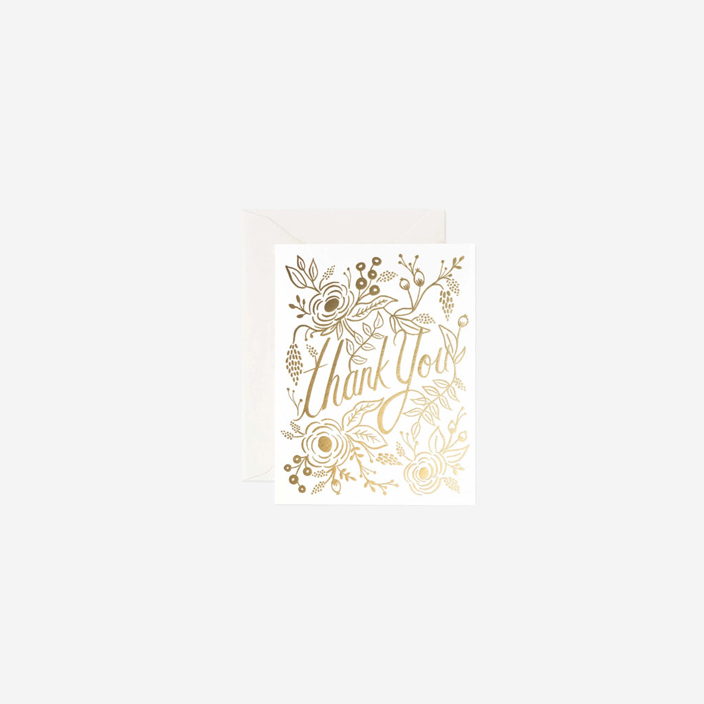 Rifle Paper Co's collection of thoughtful thank-you cards offer a beautiful way to show your appreciation. A blank interior lets your handwritten note take center stage.