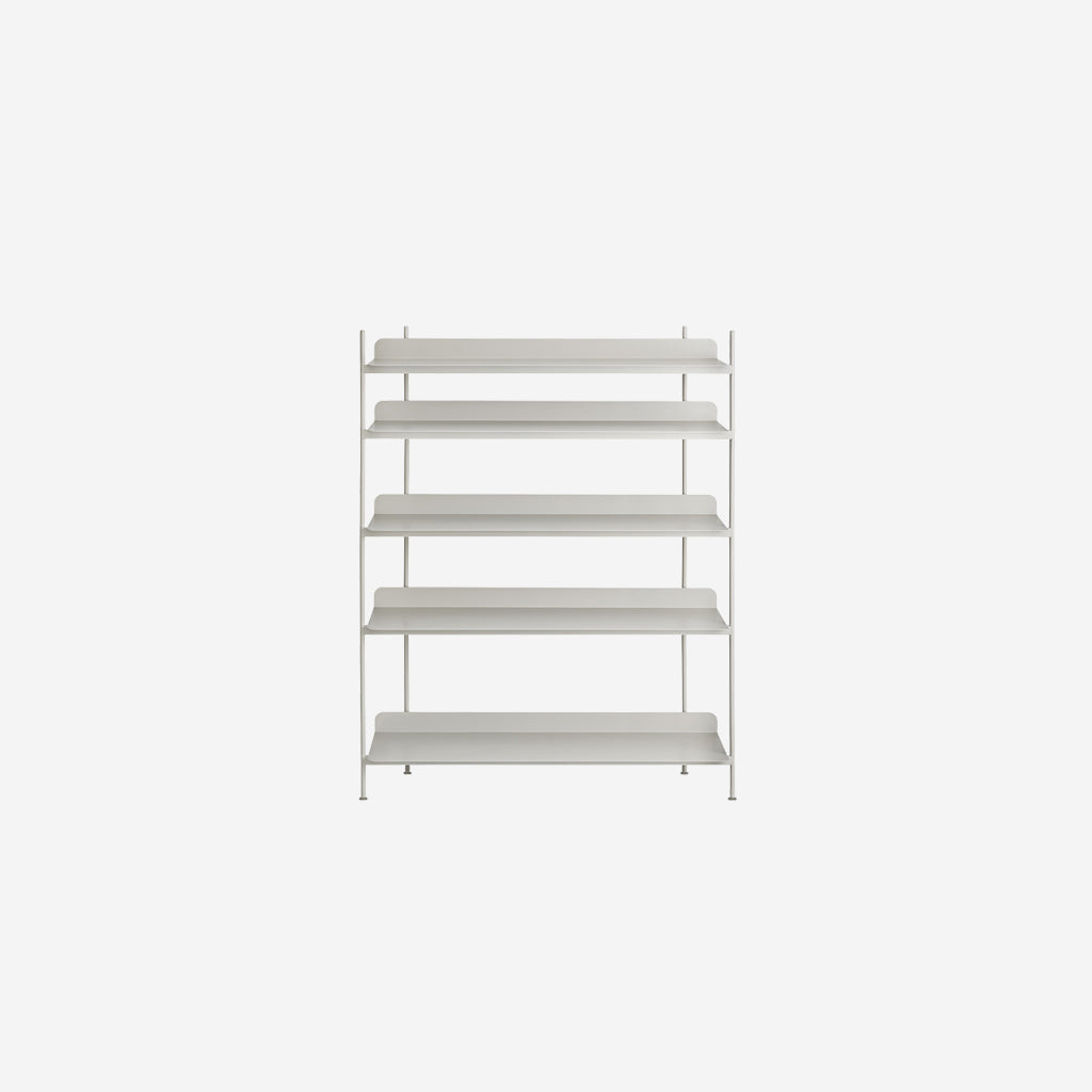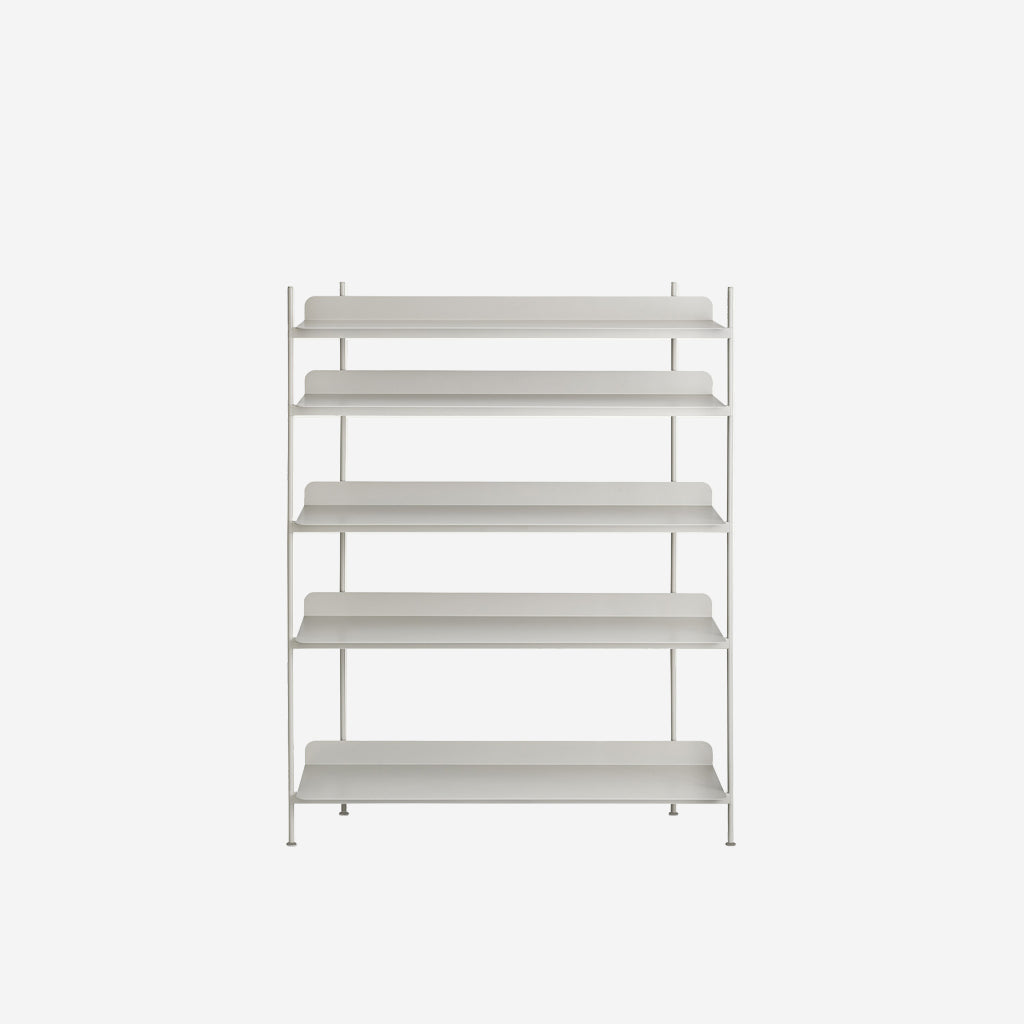 With its simple and refined expression, the Compile Shelving System features clean lines in a solid construction. The lower wall on the back of each shelf gives the Compile Shelving System an understated sense of detailing along with added functionality. Create your own personal Compile Shelving System from its simple components or choose one of the eight pre-arranged solutions.