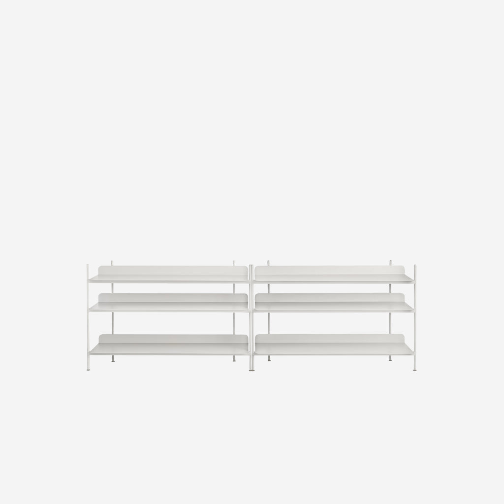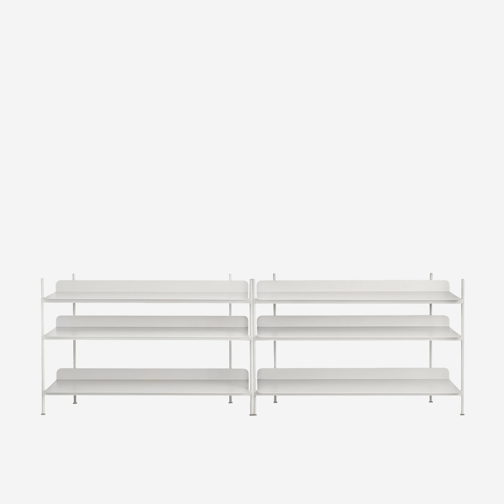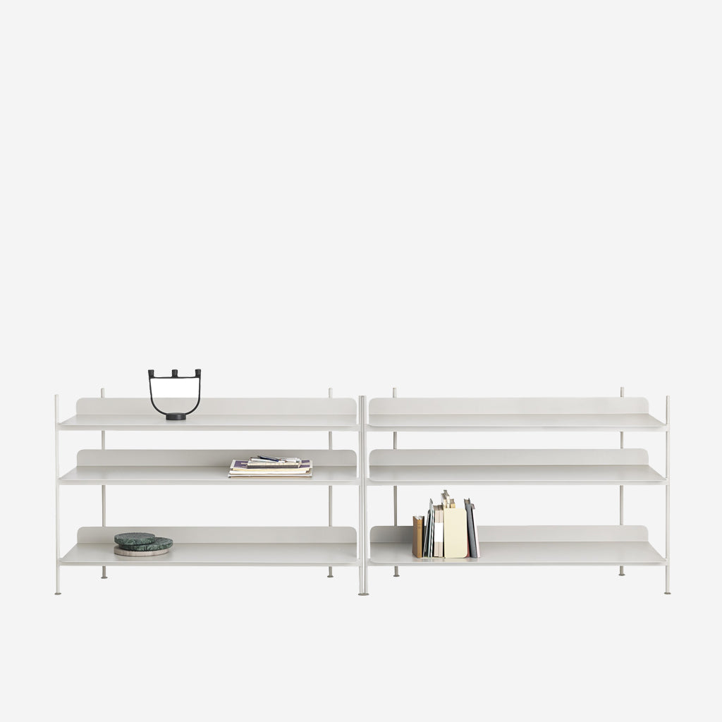With its simple and refined expression, the Compile Shelving System features clean lines in a solid construction. The lower wall on the back of each shelf gives the Compile Shelving System an understated sense of detailing along with added functionality. Create your own personal Compile Shelving System from its simple components or choose one of the eight pre-arranged solutions.
