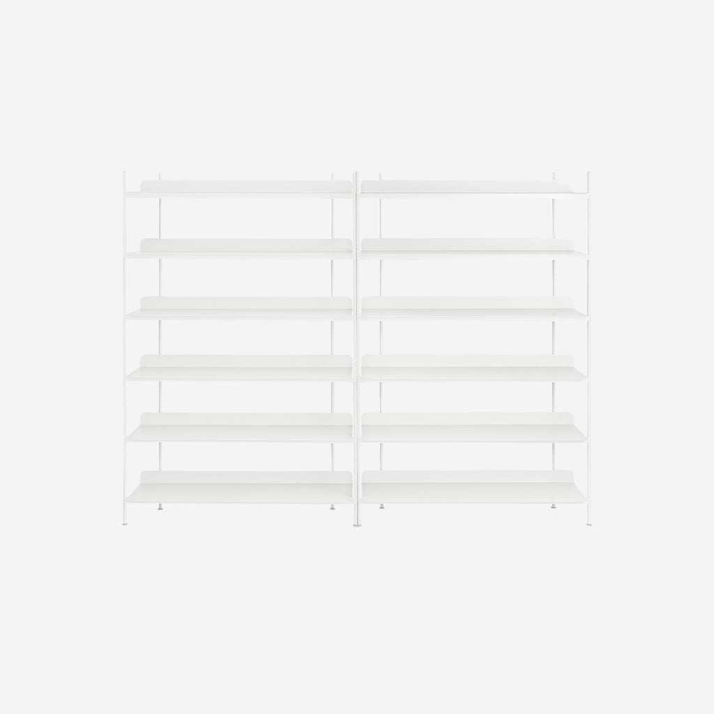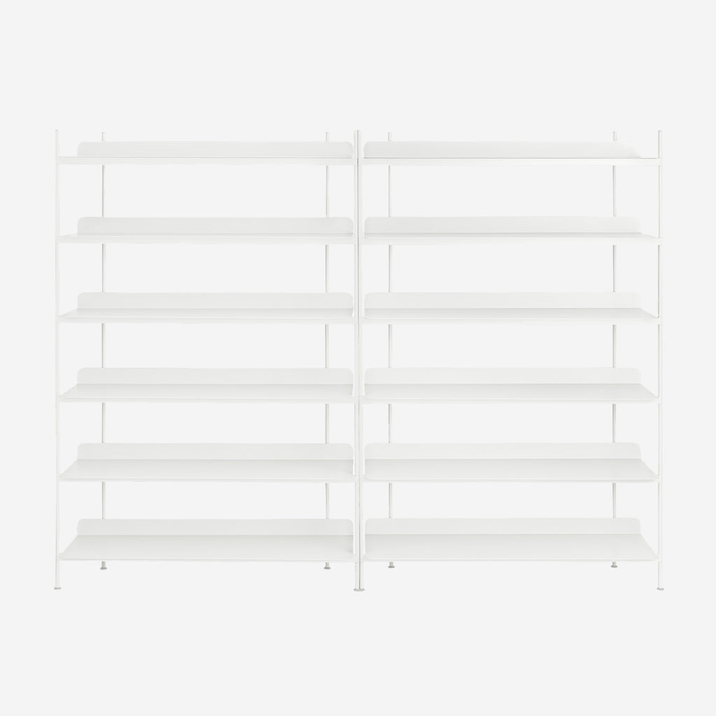 With its simple and refined expression, the Compile Shelving System features clean lines in a solid construction. The lower wall on the back of each shelf gives the Compile Shelving System an understated sense of detailing along with added functionality. Create your own personal Compile Shelving System from its simple components or choose one of the eight pre-arranged solutions.