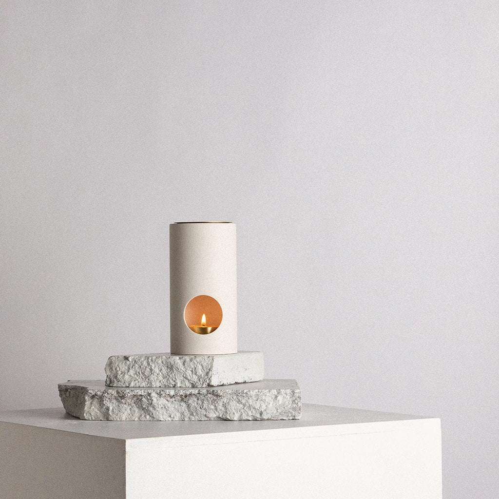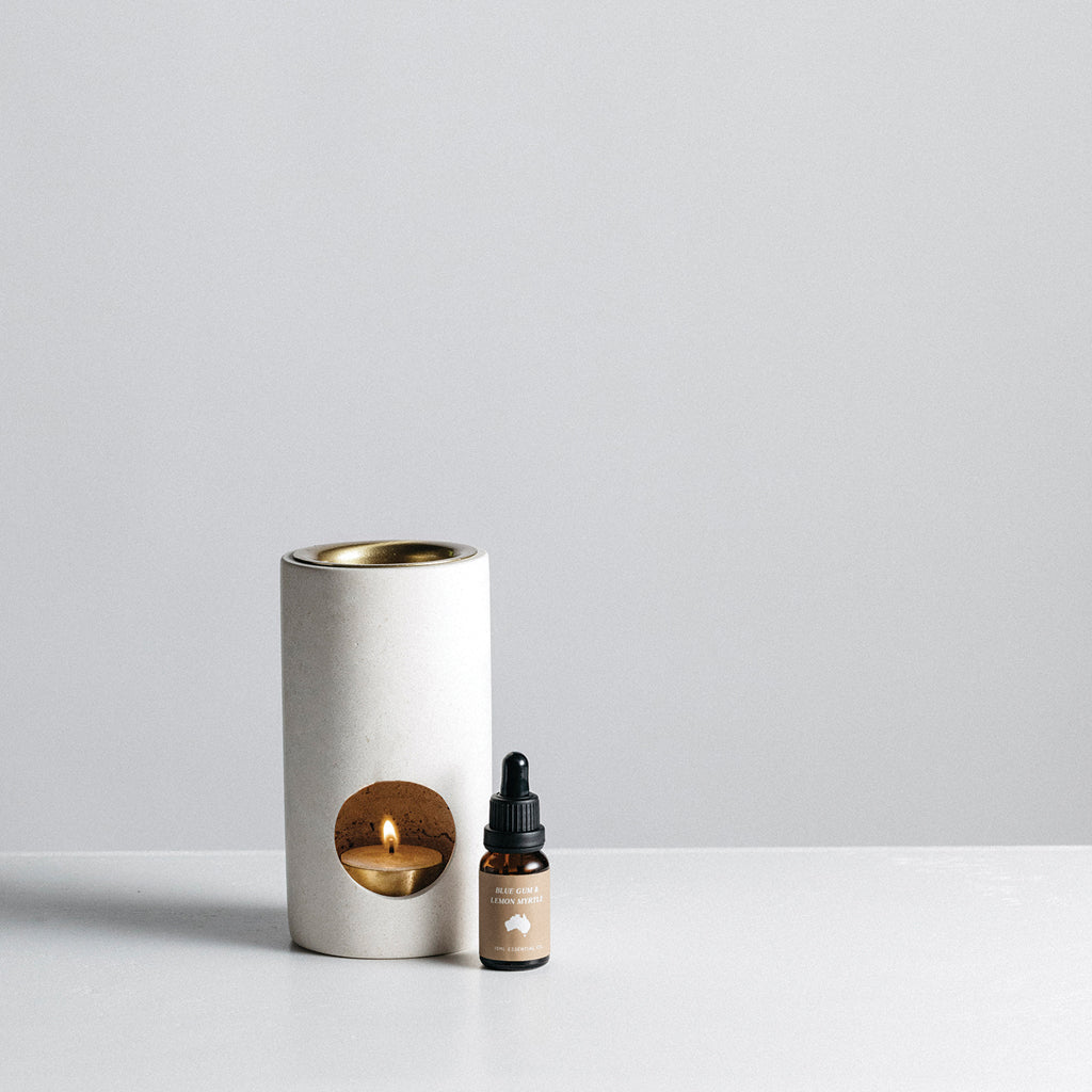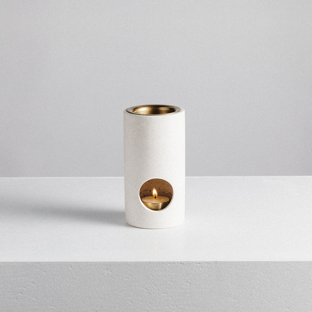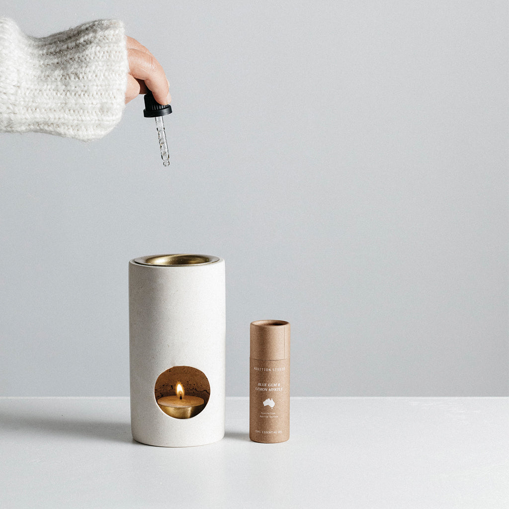 Designed with a minimal aesthetic in mind, Addition Studio's Limestone Synergy Oil Burner features a brass dish and tea light holder. Carved from a solid piece of stone and paired with brushed brass, the oil burner elevates your ritual experience through its beauty and function. Comes gift boxed with an Essential Oil & Australian beeswax candle.
