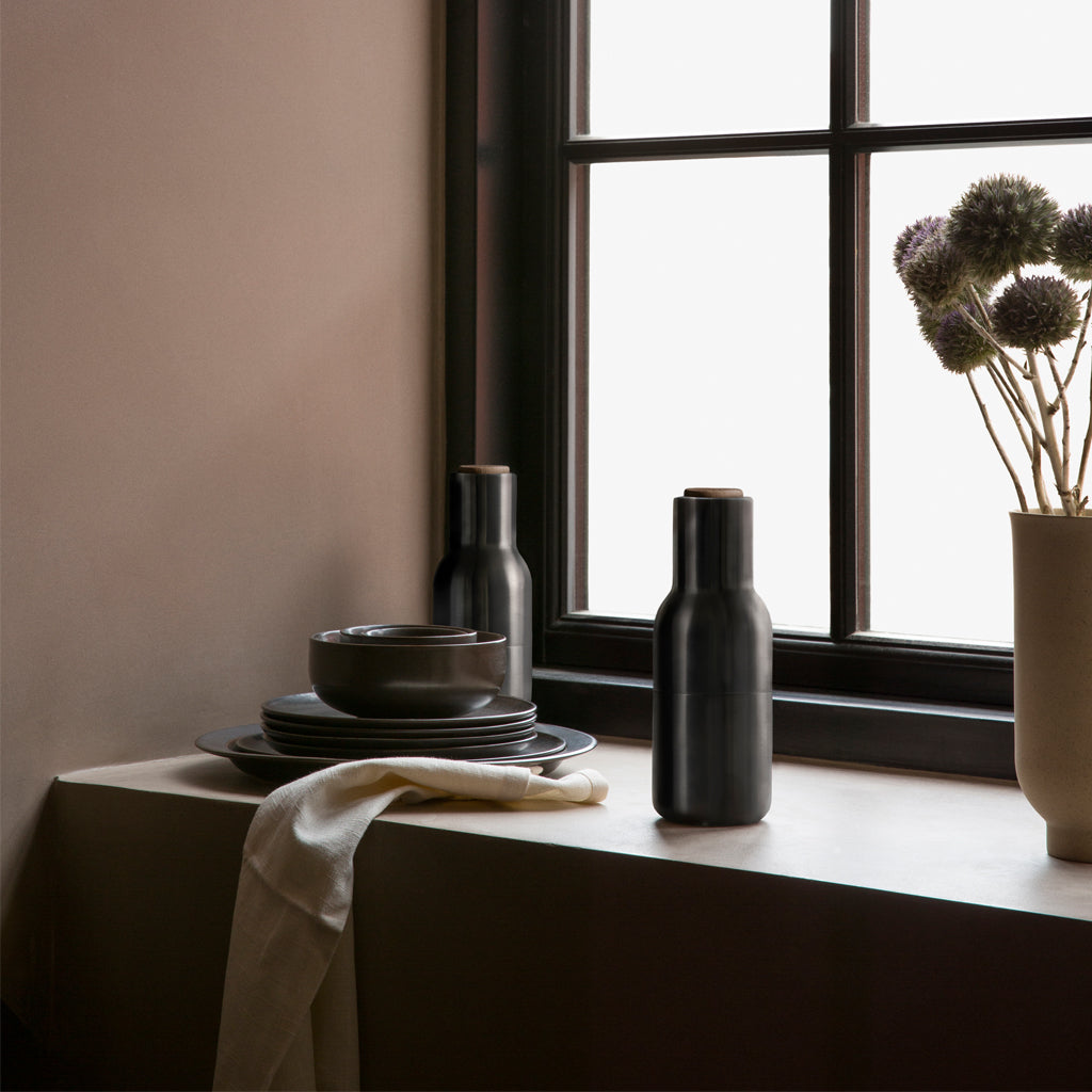 The minimalist Bottle Grinder by Norm Architects is fast becoming iconic. It's architectural shape means you will never hide it away - these grinders will undoubtedly take pride of place on your kitchen bench or dining table. The surface of the grinders is rubber and amazingly tactile. Easy to clean and highly functional with a powerful ceramic grinder: the mill sits at the top so that salt, pepper and spices are only dispensed when you grind.