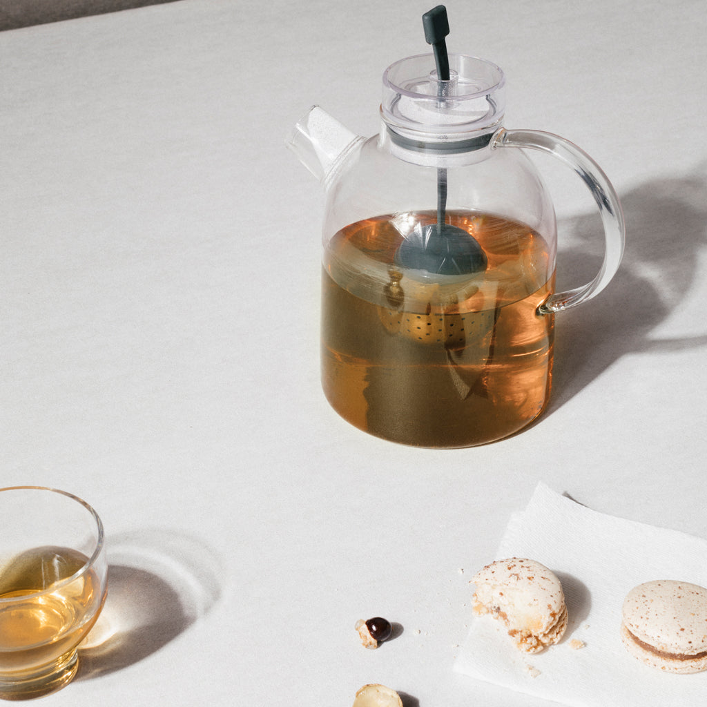 This glass Teapot uniquely embraces the meeting of two traditions - the Asian zen philosophy and modern Scandinavian design. A special feature is the teapot's transparency that grants a visual experience of the tea and stimulates the senses of sight, touch and smell alike. As a fine design detail the tea egg is placed in the center of the pot and is easily raised by pulling the attached silicon string when the tea is ready for serving. Cannot be used on the stove.