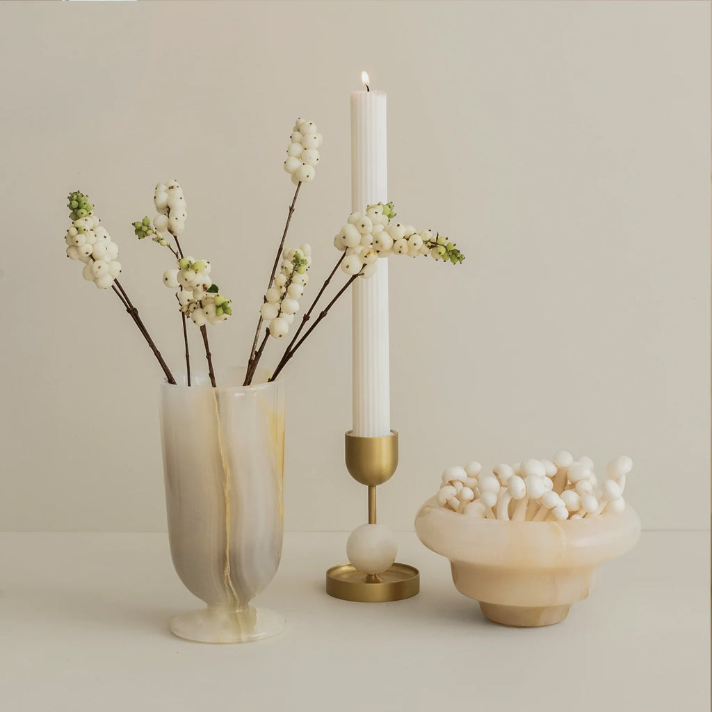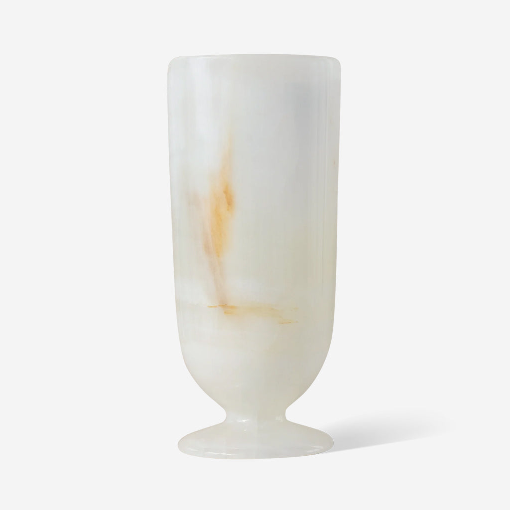 Craft from White Onyx, the jewel toned Bouquet Vase recalls classic shape, but has its own modern minimalist style. Filled with fresh flowers, it will add stunning visual décor in any setting.