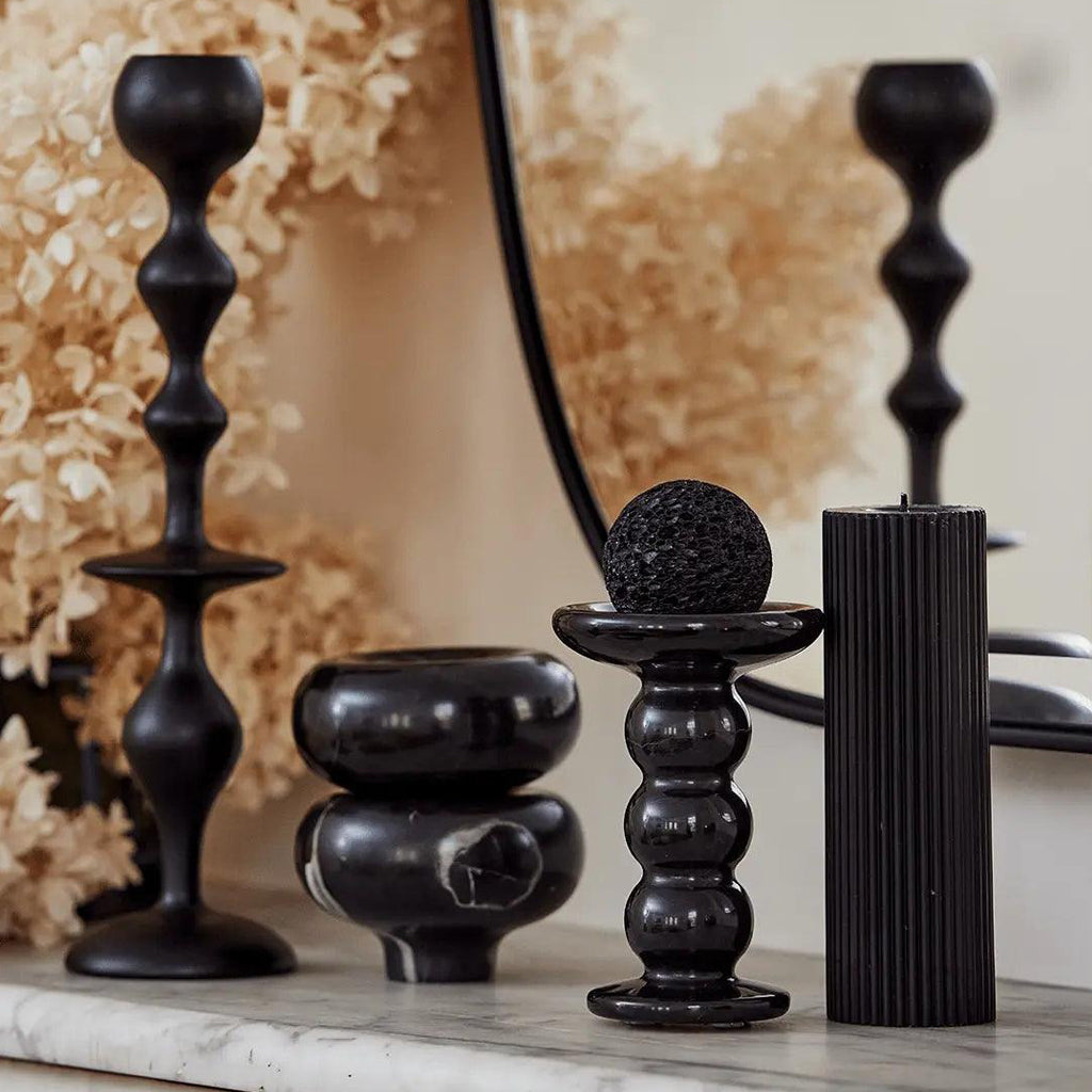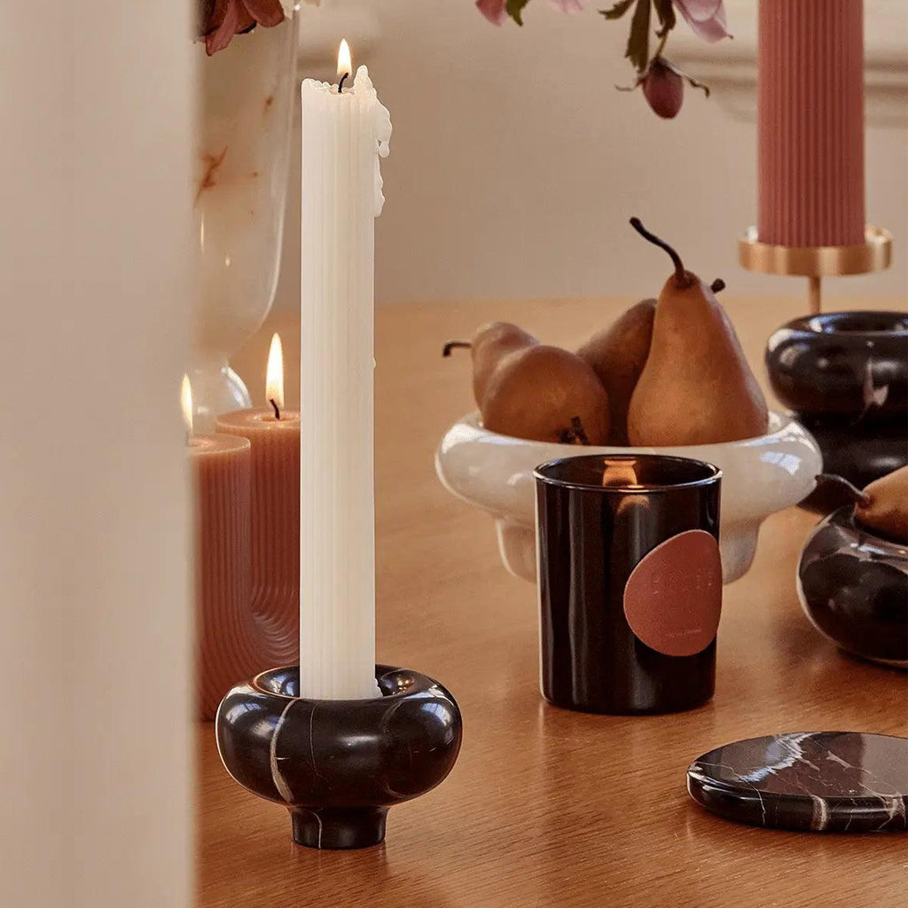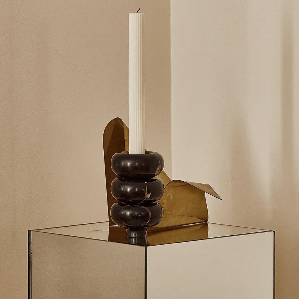 Dramatic arcs define the unique charm of the Halo Candle Holder. Its rounded top and slender base capture the essence of mid-century style, exuding an aura of elegance. The stackable design offers versatility, allowing you to create sculptural arrangements when not in use as candle holders. Let the warm candlelight dance gracefully around this captivating piece, infusing your space with a sense of enchantment.