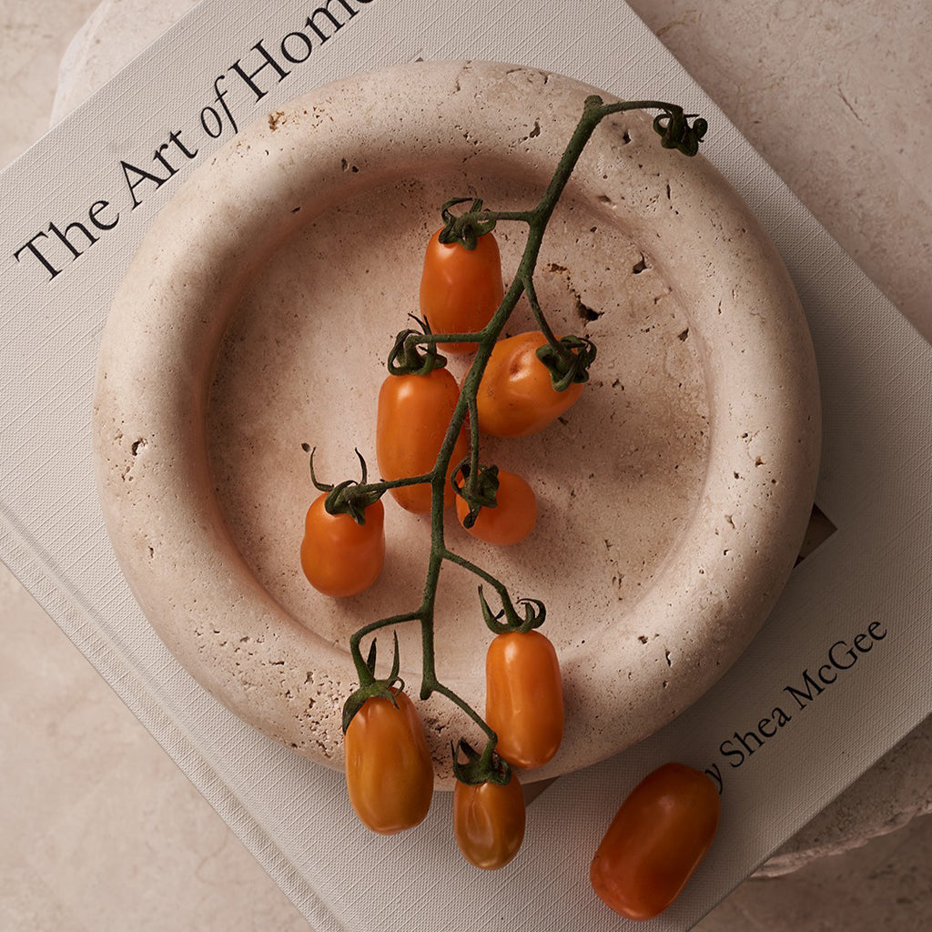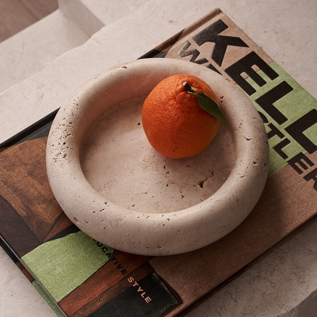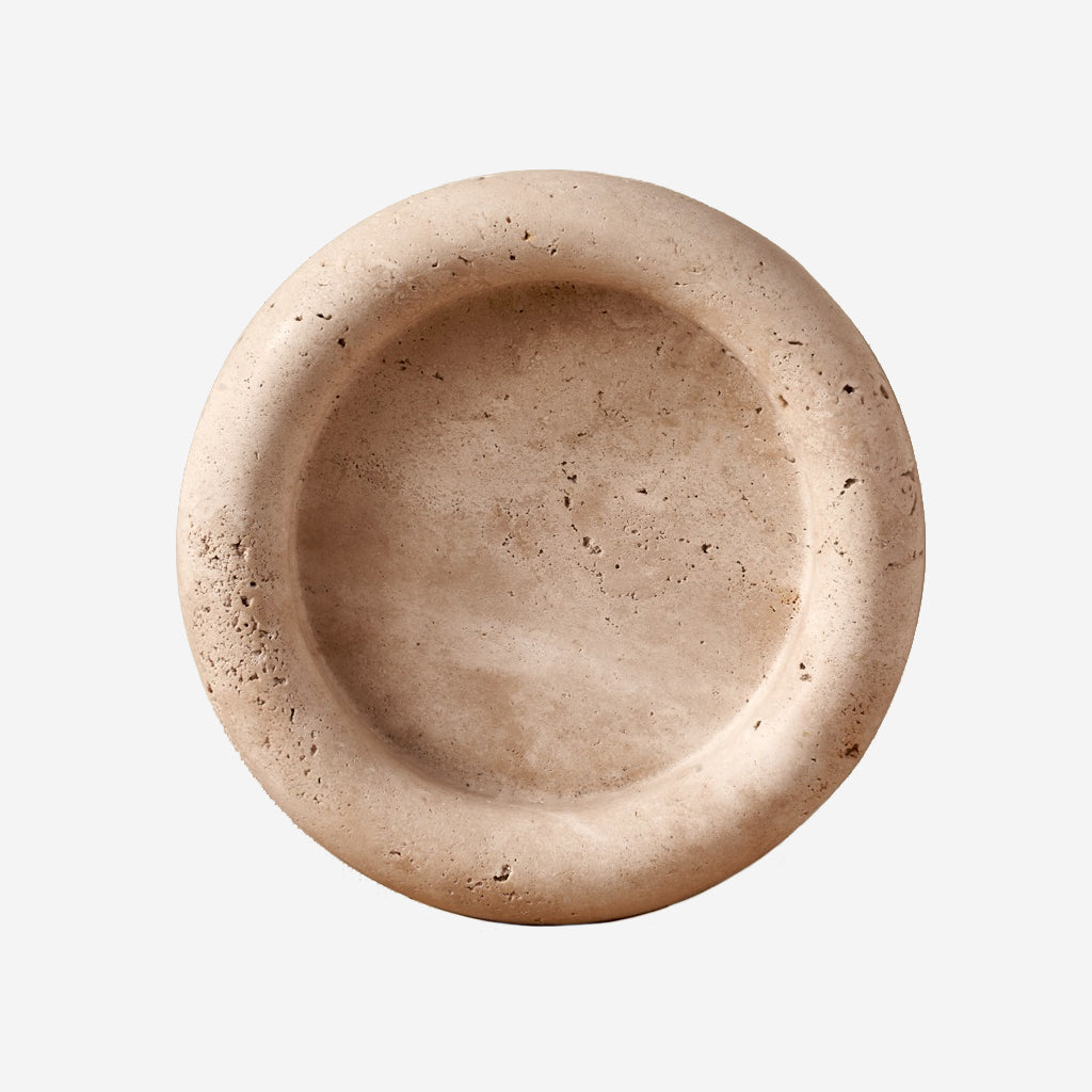 Make a stylish statement on your coffee table or dining table with the Halo Travertine Tray. Its serene and graphic shapes create an artistic focal point, perfect for displaying fruits, incense, jewelry, or anything you desire. Crafted with precision, this tray adds a touch of sophistication to any setting, elevating your decor with its timeless beauty.