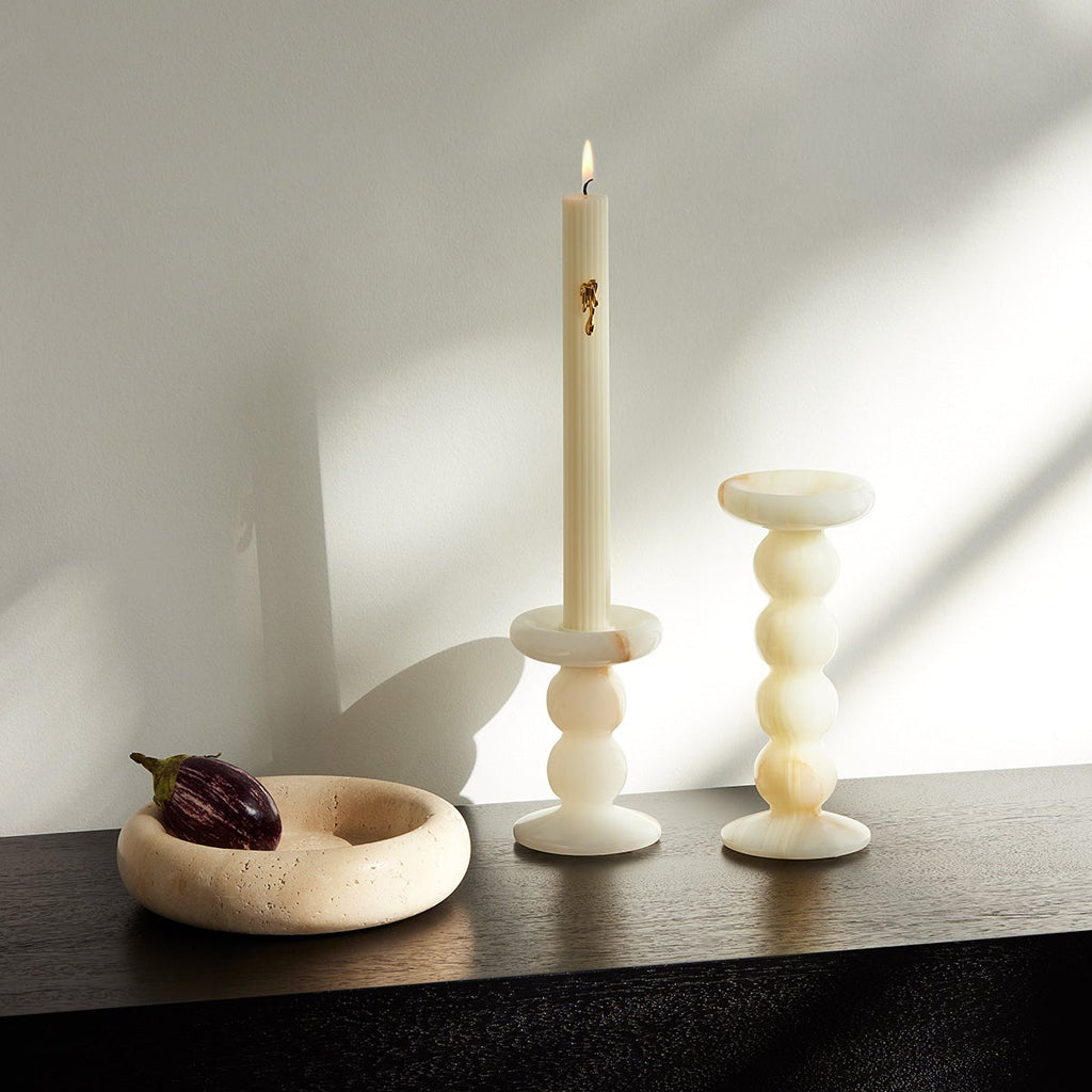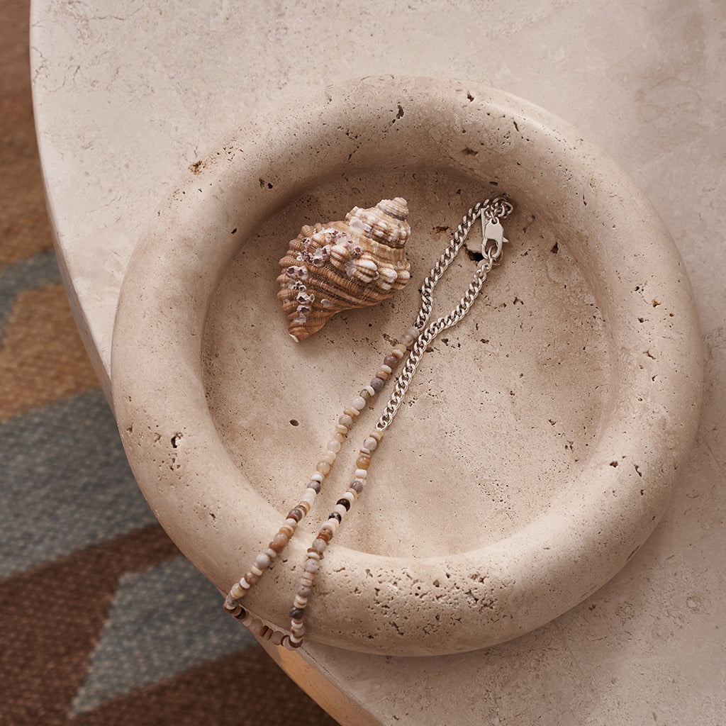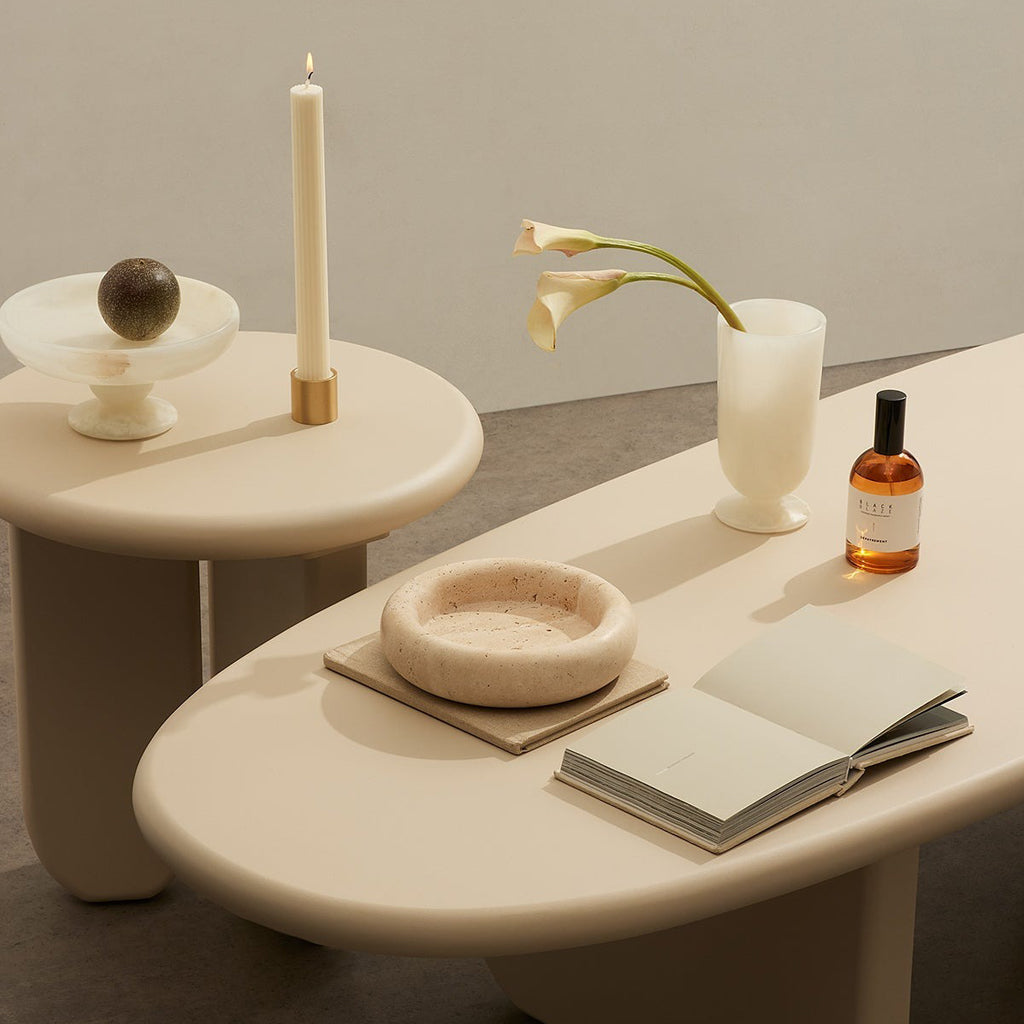 Make a stylish statement on your coffee table or dining table with the Halo Travertine Tray. Its serene and graphic shapes create an artistic focal point, perfect for displaying fruits, incense, jewelry, or anything you desire. Crafted with precision, this tray adds a touch of sophistication to any setting, elevating your decor with its timeless beauty.