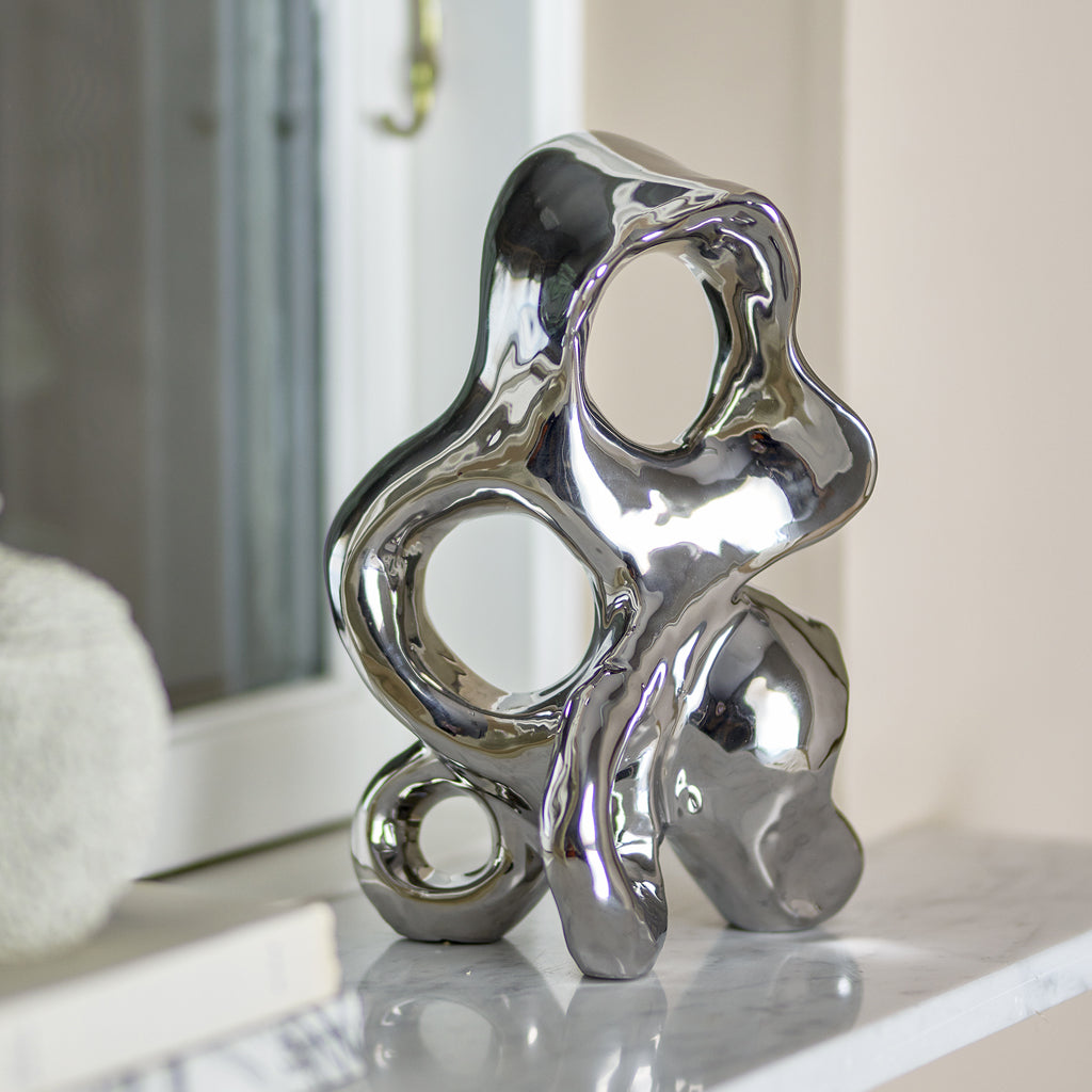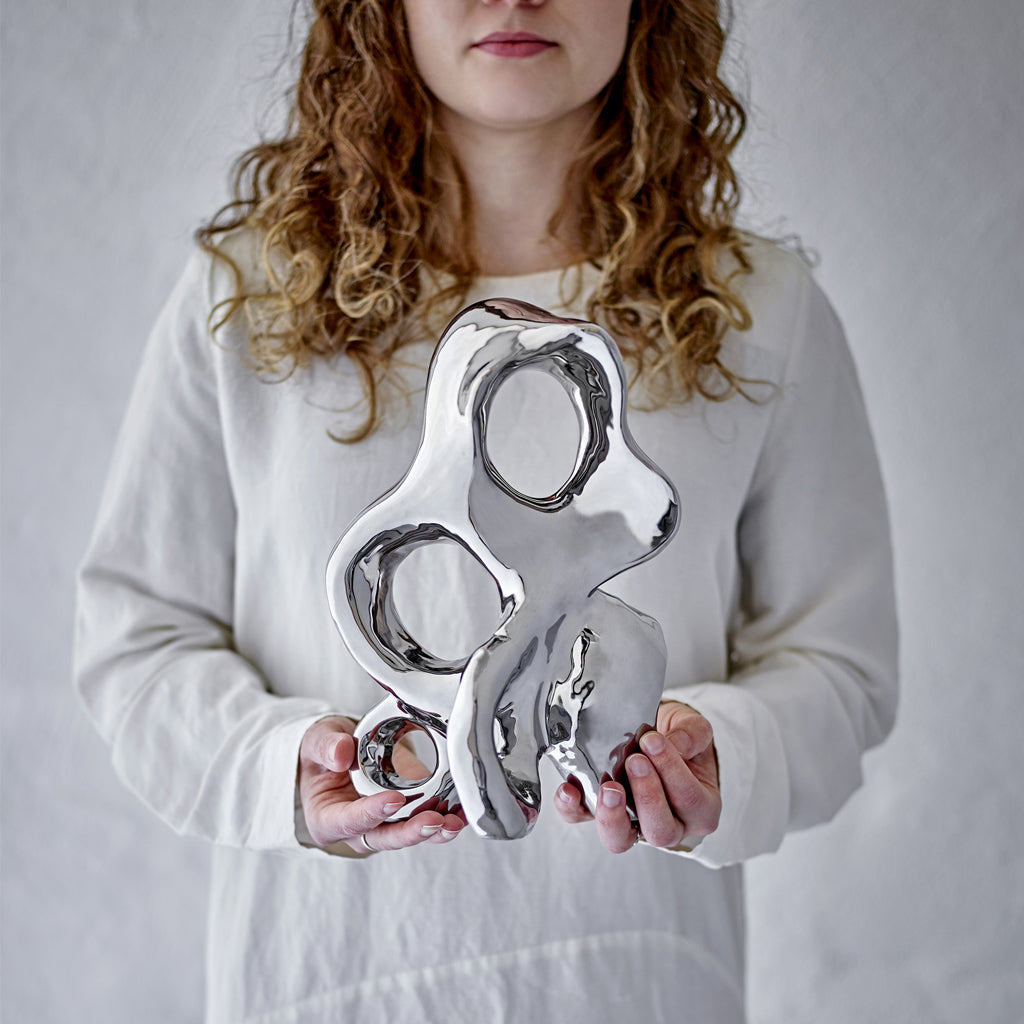 The Vinini Deco by Bloomingville is made of stoneware with a silver-colored surface that catches the light and creates a decorative and sculptural look. A nice detail for a shelf or windowsill.