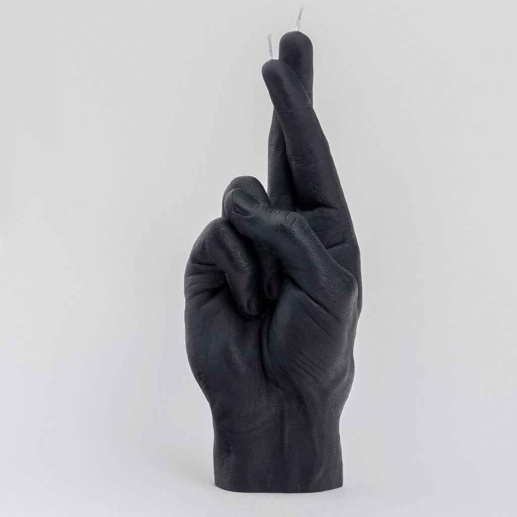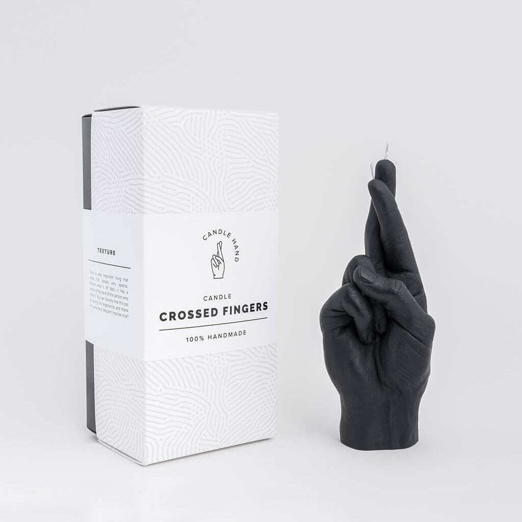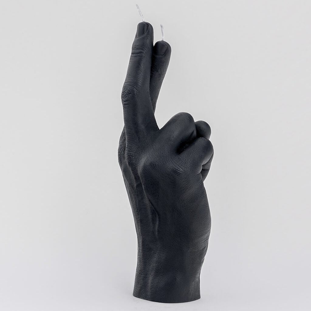 Made with nothing but colored dye and paraffin wax, this handcrafted Crossed Fingers Candle is designed to look just like a real hand. It's built in the shape of a common hand gesture, but it's also the same size as an average hand, and designed with insanely realistic fine lines and textures that replicate human skin. Cheeky but effective, each one is a shocking, unusual, or hilarious piece of decor, or an amazing gift.