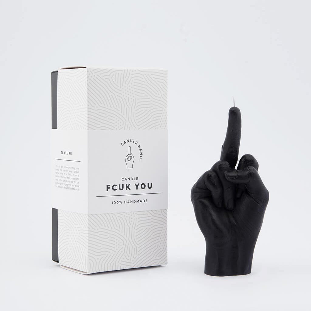 Made with nothing but colored dye and paraffin wax, this handcrafted Fcuk You Candle is designed to look just like a real hand. It's built in the shape of a common hand gesture, but it's also the same size as an average hand, and designed with insanely realistic fine lines and textures that replicate human skin. Cheeky but effective, each once is a shocking, unusual, or hilarious piece of decor, or an amazing gift.