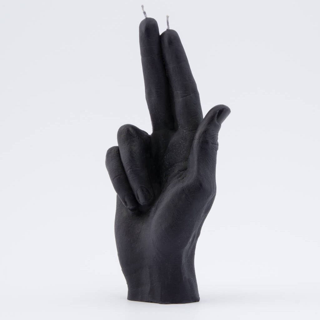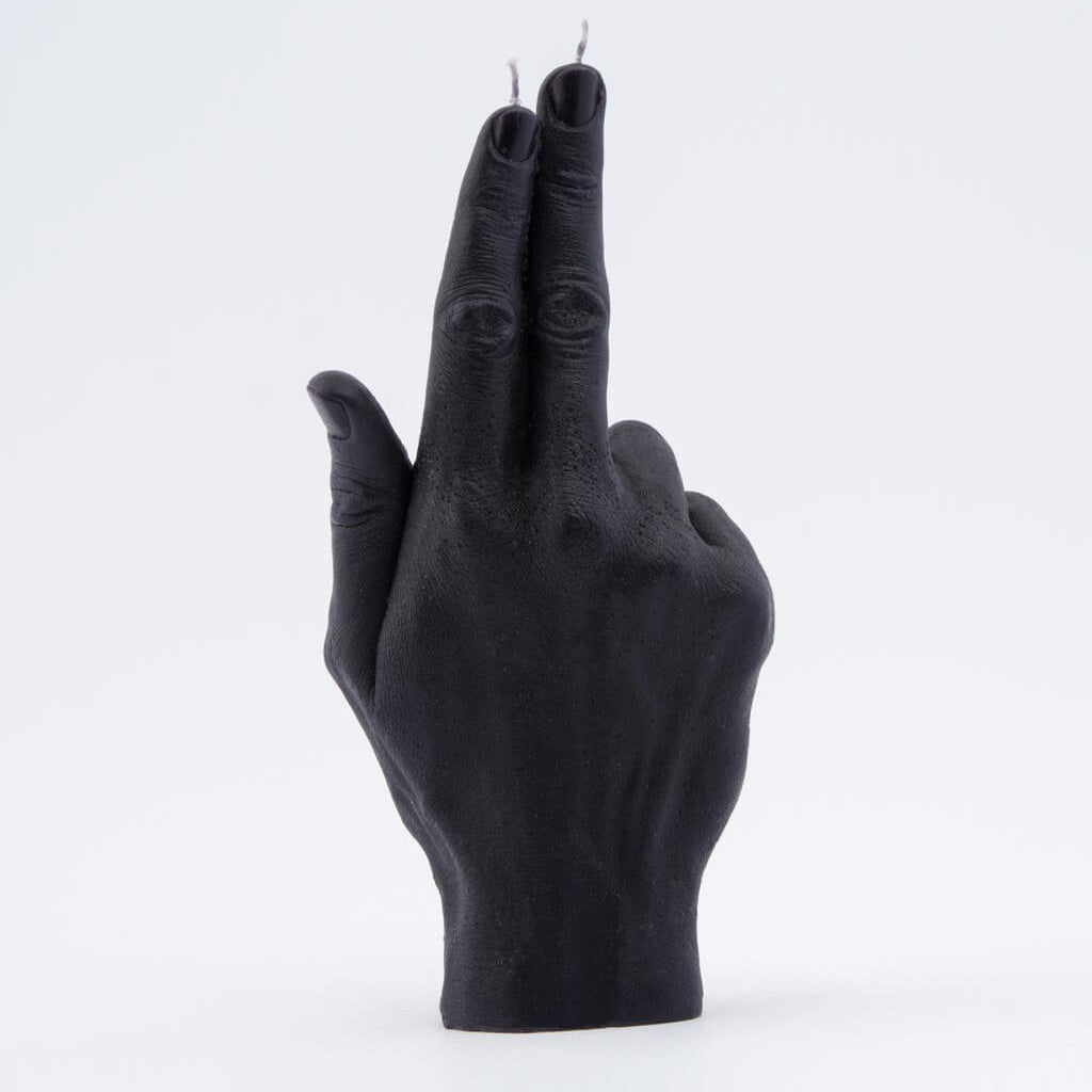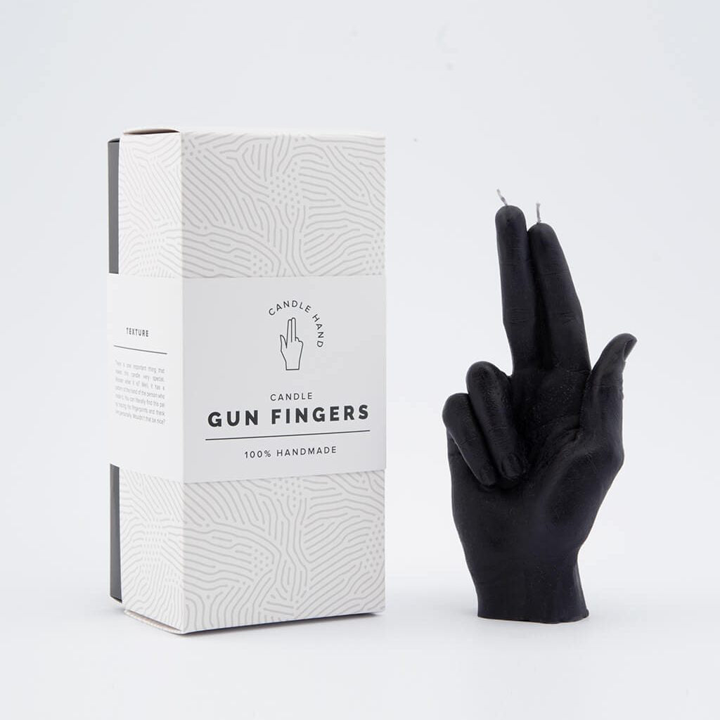 Made with nothing but colored dye and paraffin wax, this handcrafted Gun Fingers Candle is designed to look just like a real hand. It's built in the shape of a common hand gesture, but it's also the same size as an average hand, and designed with insanely realistic fine lines and textures that replicate human skin. Cheeky but effective, each one is a shocking, unusual, or hilarious piece of decor, or an amazing gift.