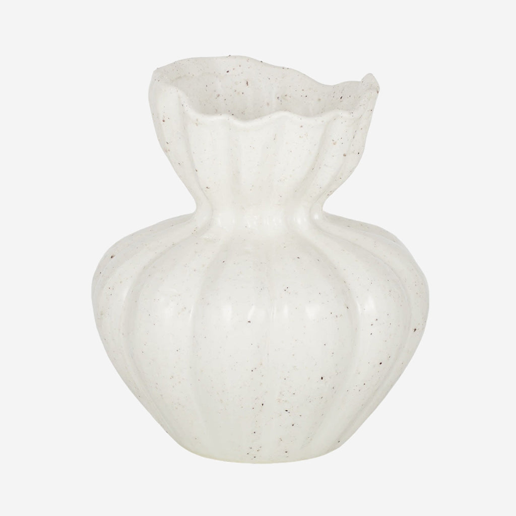 Display your florals and add an elegant touch to any room with the stunning Clara Vase. Featuring a fluted design this decorative vase has an ivory glaze with black speckles across the surface for added visual texture. Adorn it with native stems and florals or showcase it on its own as a statement piece.