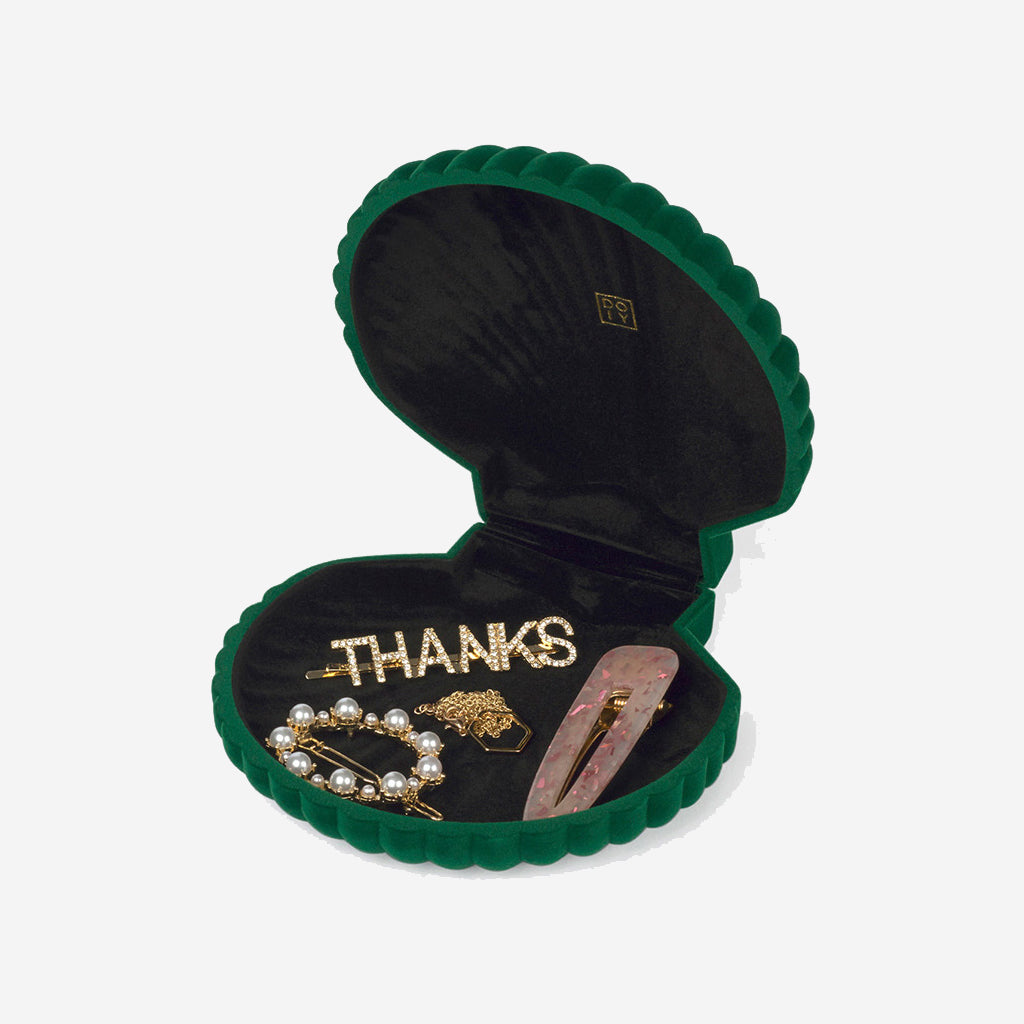 Fulfil your mermaid dreams and secure your treasures in a shell shaped jewellery box. Perfect for use at home or travel, this box is made of a soft flock material that feels like velvet.